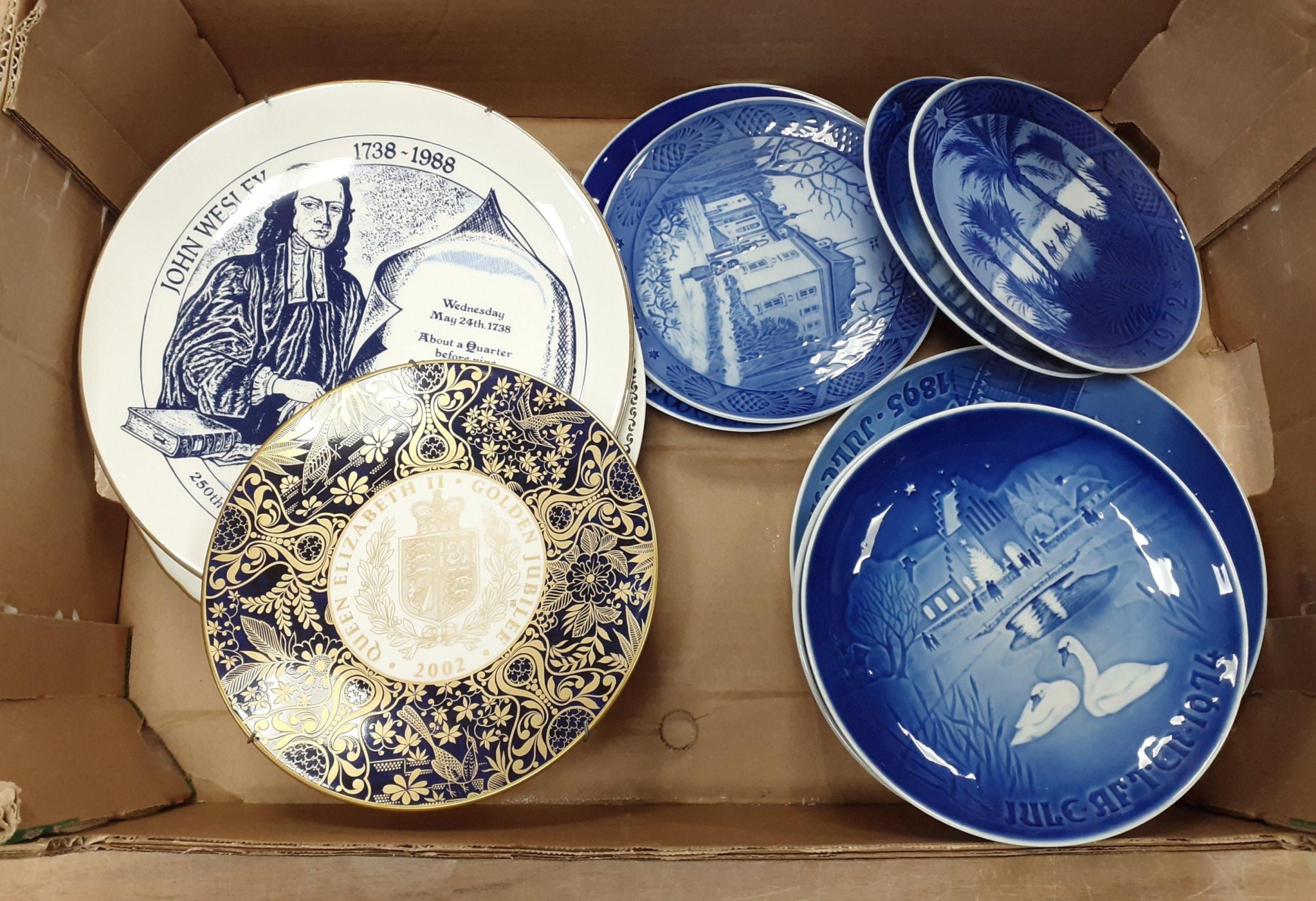 A collection of fourteen ROYAL COPENHAGEN Christmas plates dating from the 1970s plus collectors' plates to include Sydney Opera House, QEII Golden Jubilee, John Wesley 250th anniversary etc