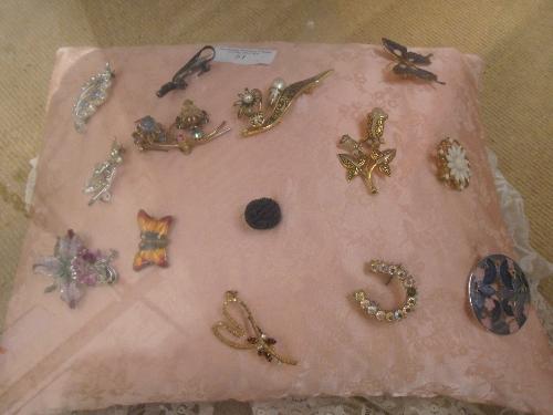 A CUSHION OF BROOCHES