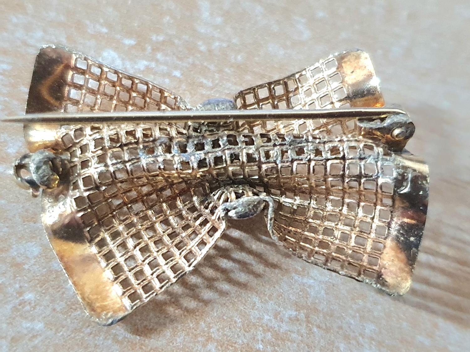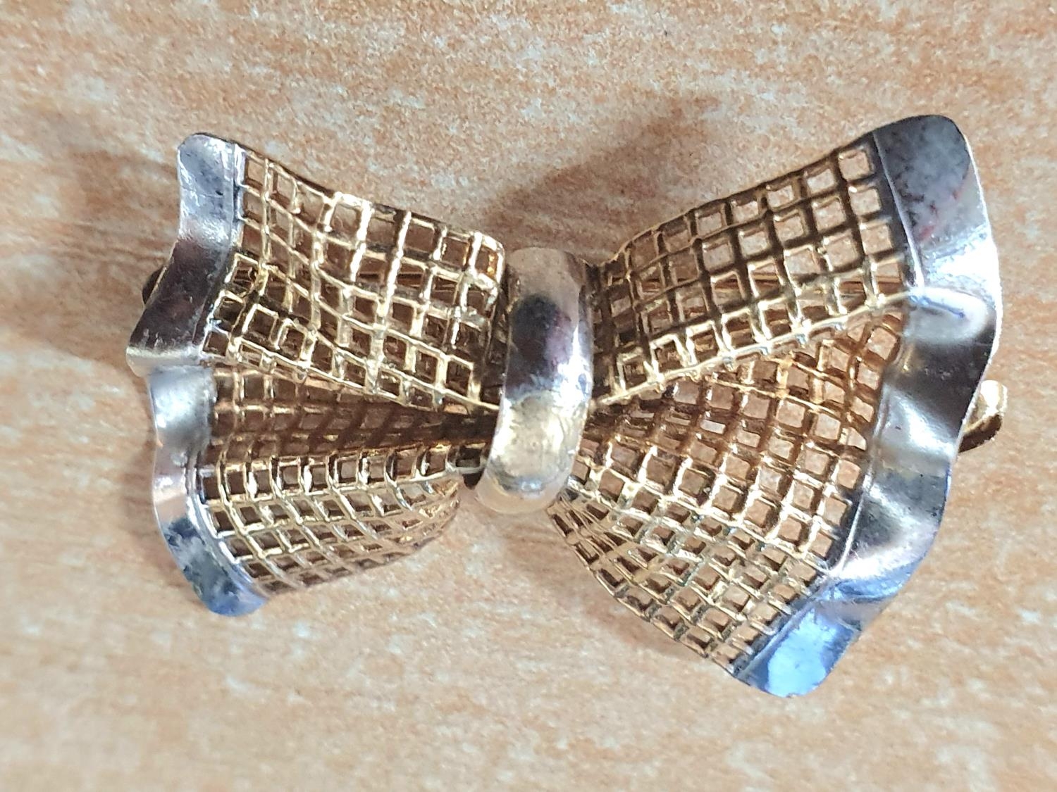 Finely worked 9ct yellow and white gold brooch in the form of a tied bow,2.4 grams
