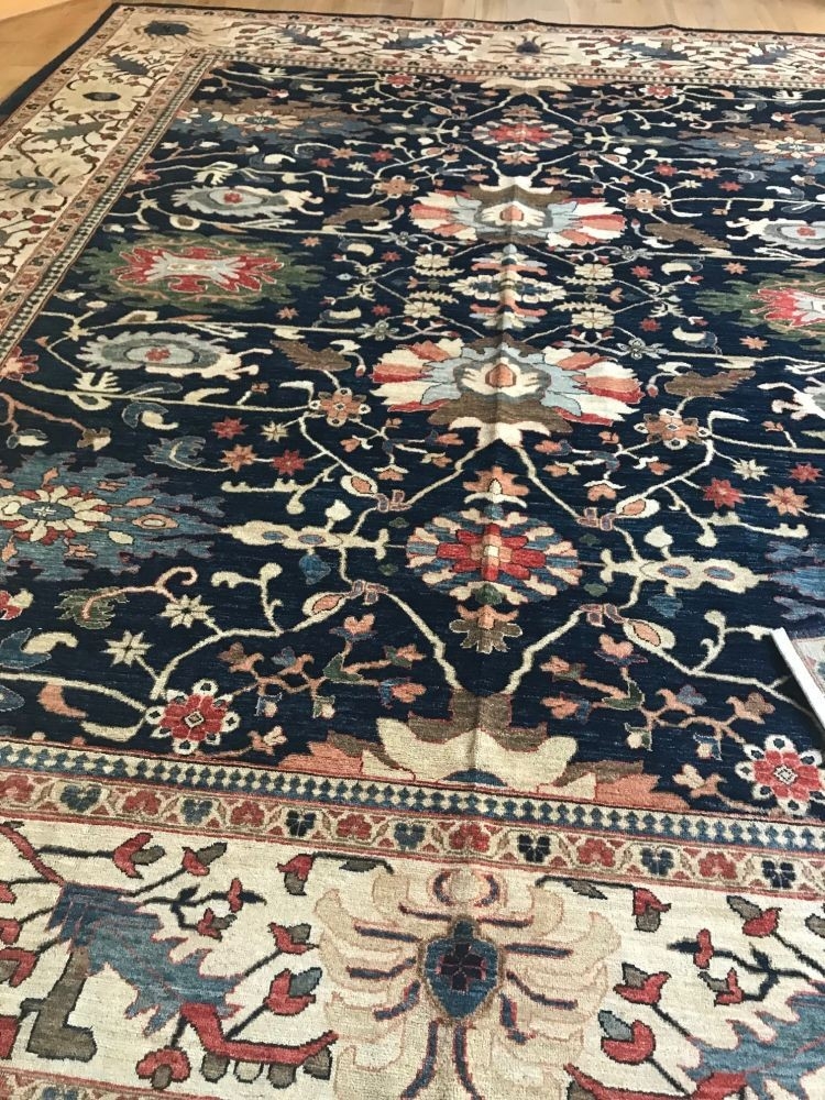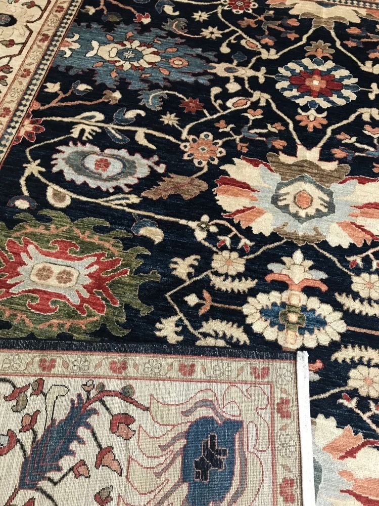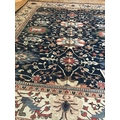 Navy ground with all-over floral and foliate design, enclosed by an ivory border. 365 x 319 cm. CARPETS AND RUGS Tuesday 11th March 2025 Approximate Time 16:25:36