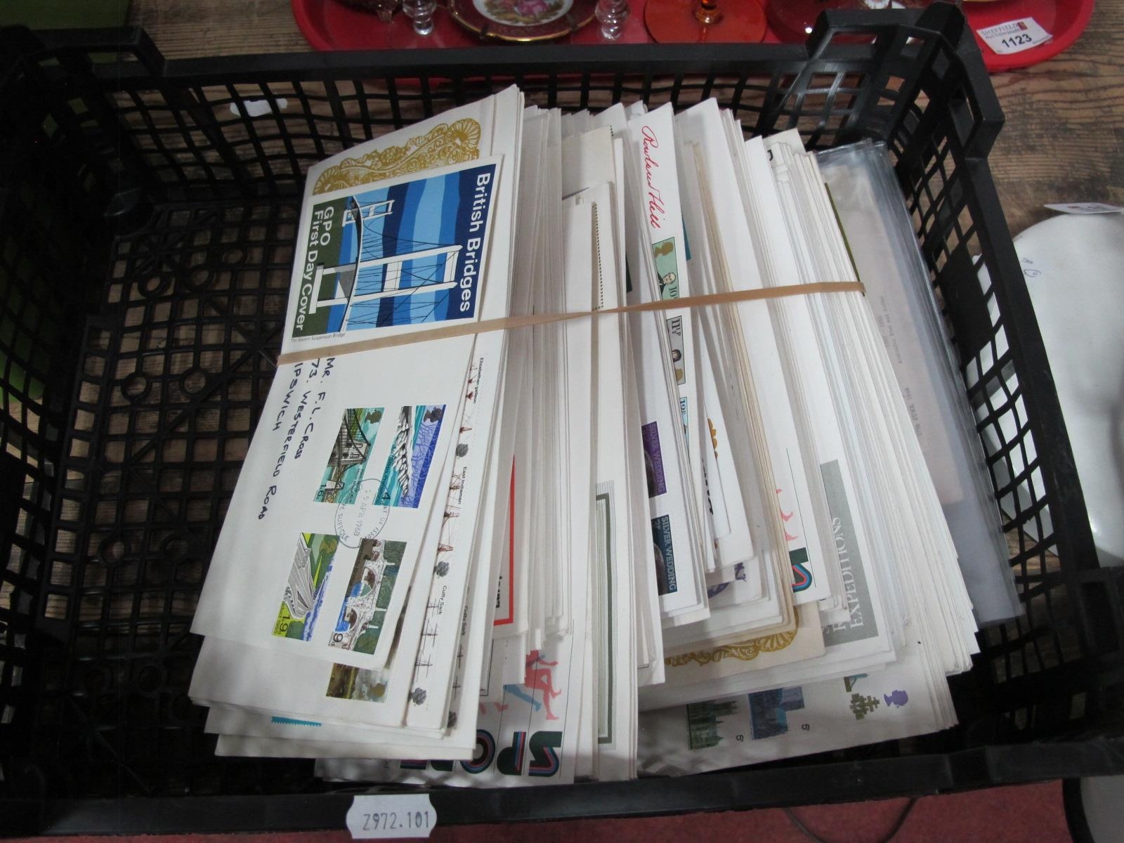 Stamps; Over 140 Great Britain First Day Covers, from late pre-decimal to mid 1980's, with some duplication, includes a few early Australia and USA covers. Noted: 1932 Water Sports Olympiad FDC, 3rd Olympic Winter Games FDC, 1932.