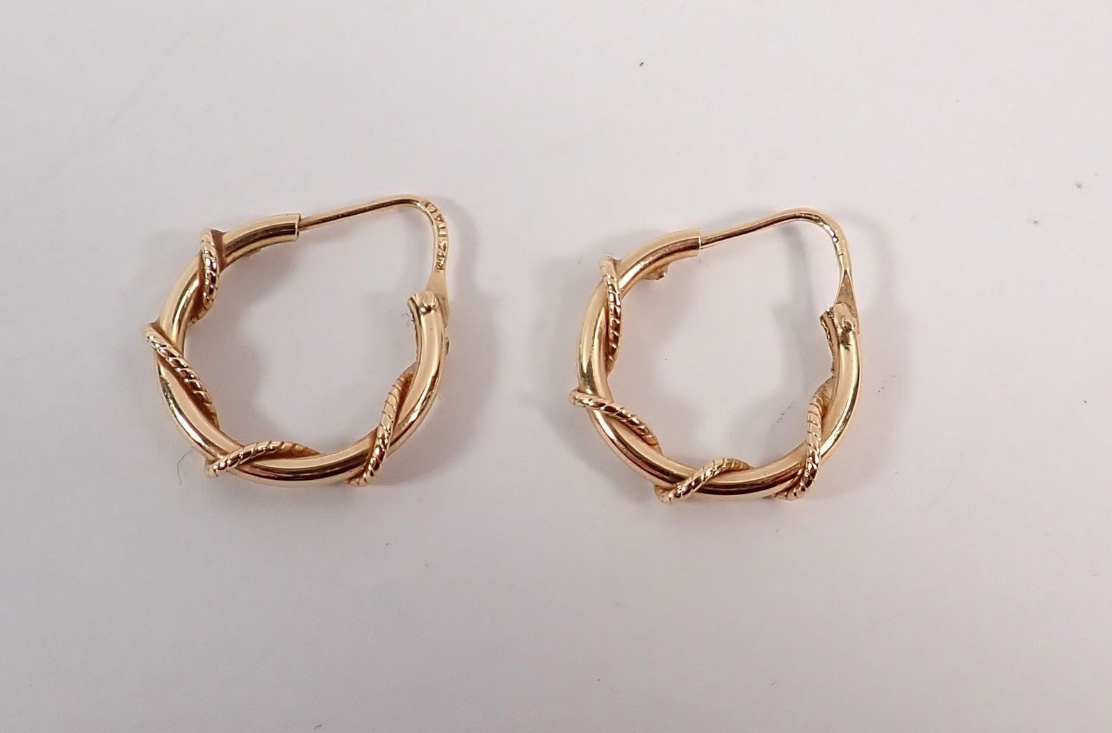 A pair of Italian 14k gold hoop earrings with rope detailing, 2.4g