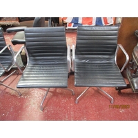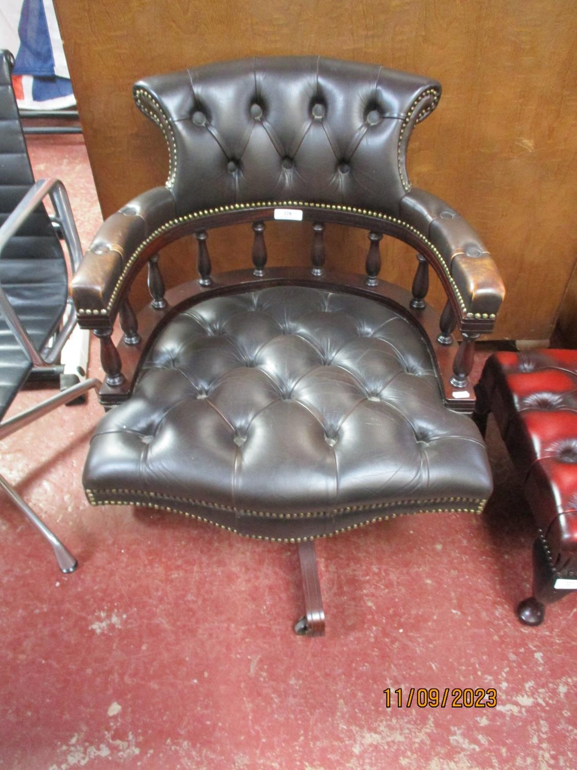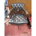 A mahogany revolving captain's chair upholstered in green coloured leather