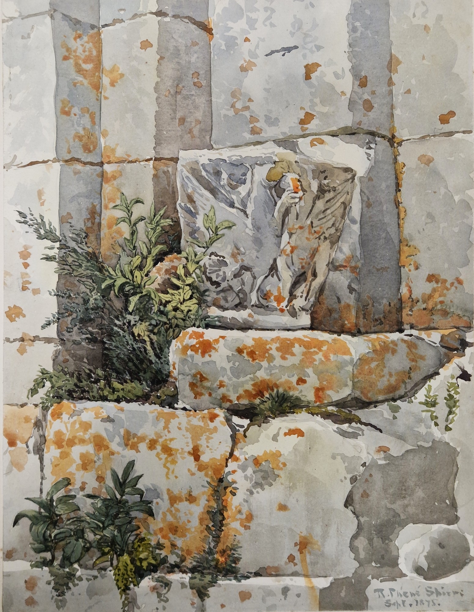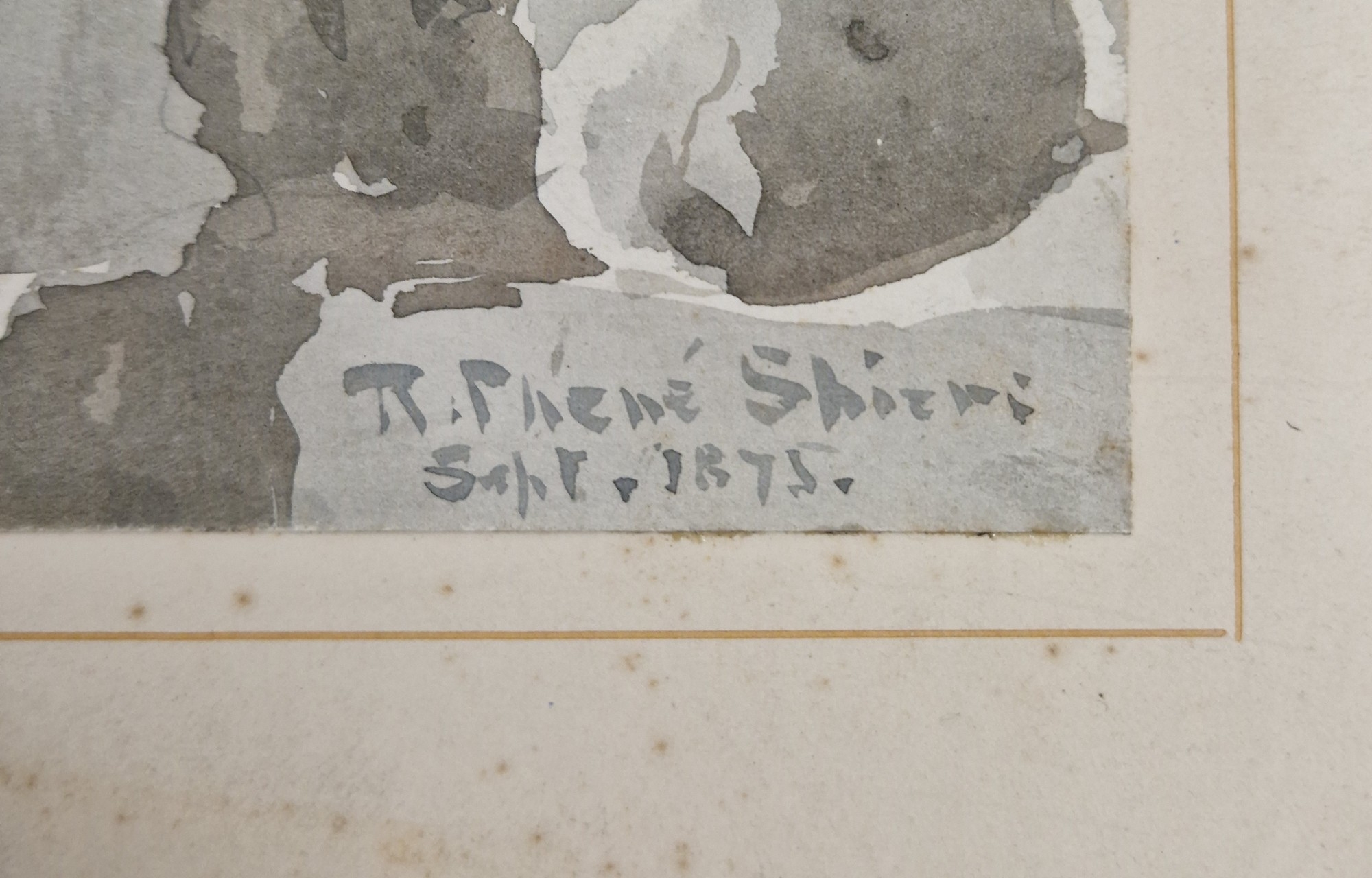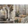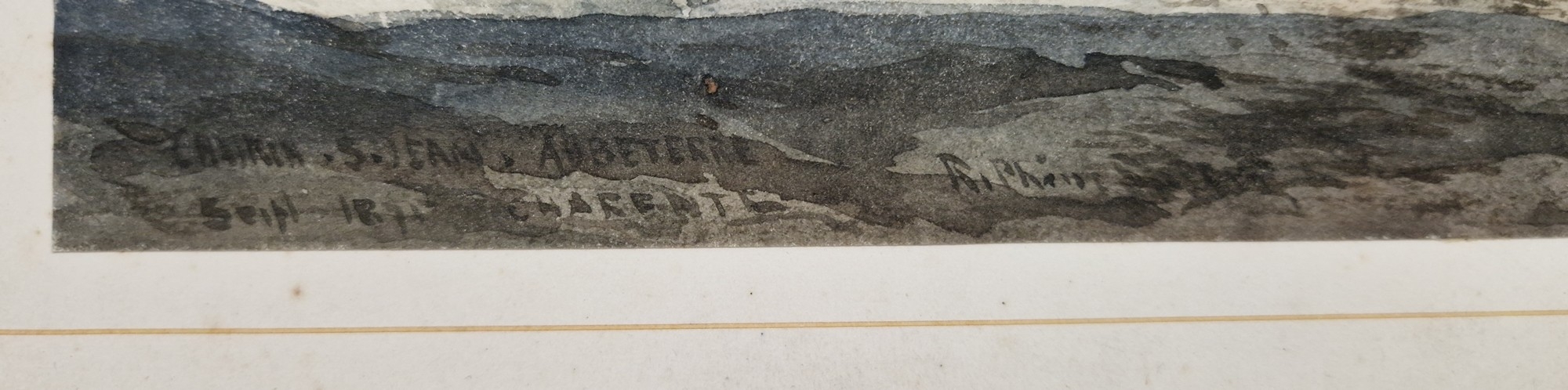 "Puyperoux, La Charente", study of stone building exterior, signed and dated September 1875 lower right, unframed but mounted on card, 29.5cm x 22.5cm, together with another watercolour by the same hand, "St. Jean, Aubeterre, La Charente", interior study of the monolithic church, signed, titled and dated 1875 lower left, unframed but mounted on card, 37.5cm x 26cm (2)