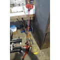 A red metal access cover lifting frame and 2 x yellow metal access cover lifting tools