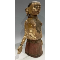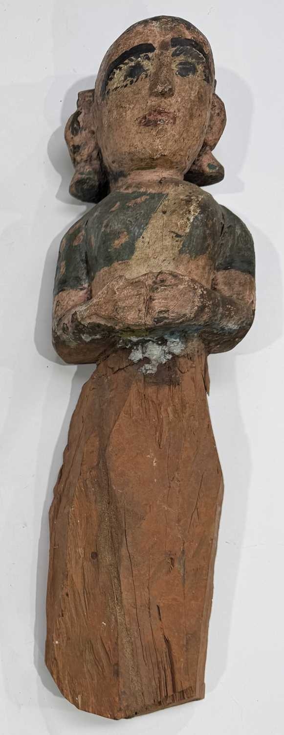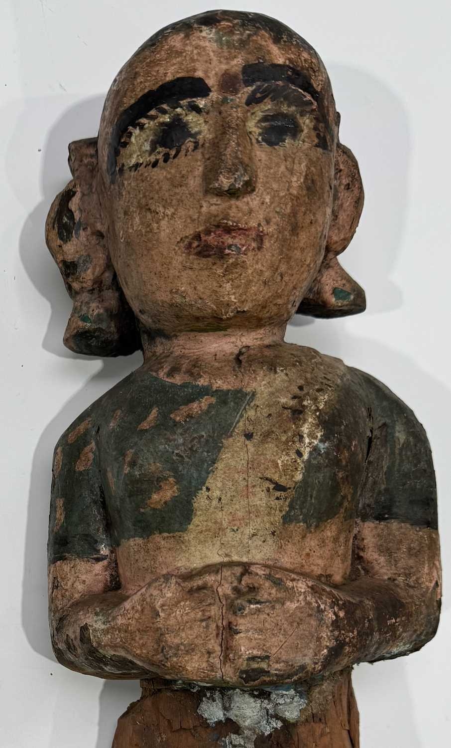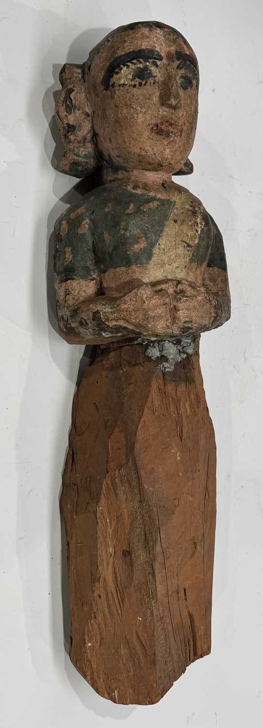 A carved wood and polychrome guardian figure of Hindu goddess Lakshmi, Terai region, Nepal, vernacular/folk style, 48cm high