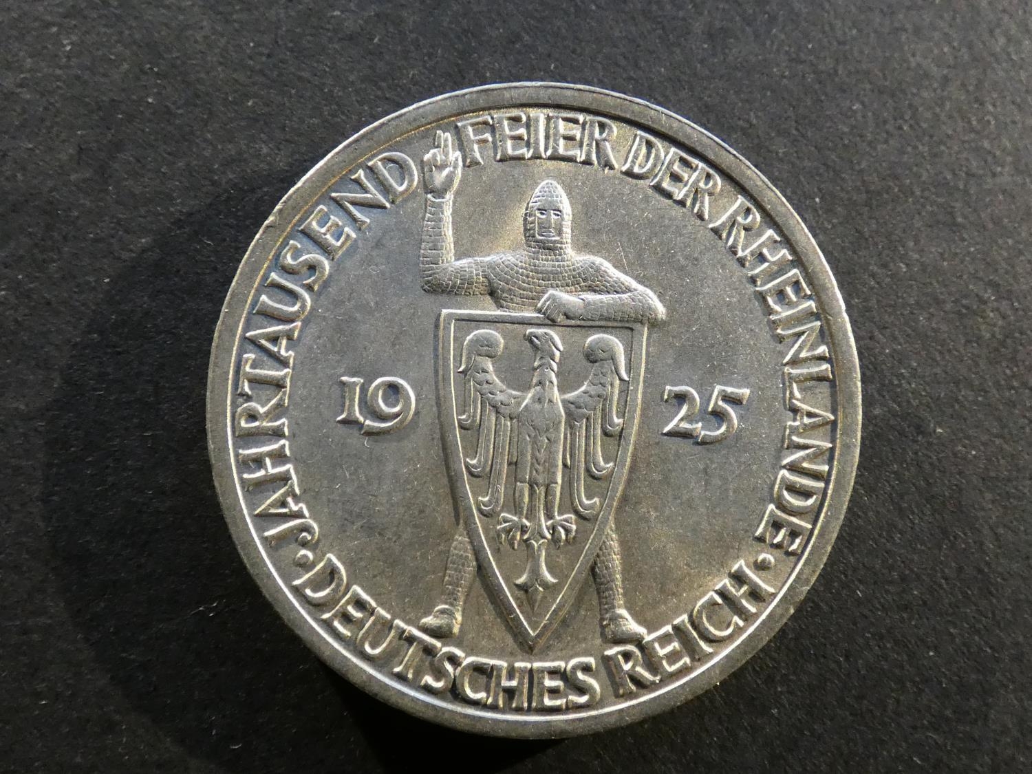 GERMANY. Weimar Republic (1919-1933). 3 Reichsmark, 1925A, Berlin mint, Rhineland Millennium, KM46, EF