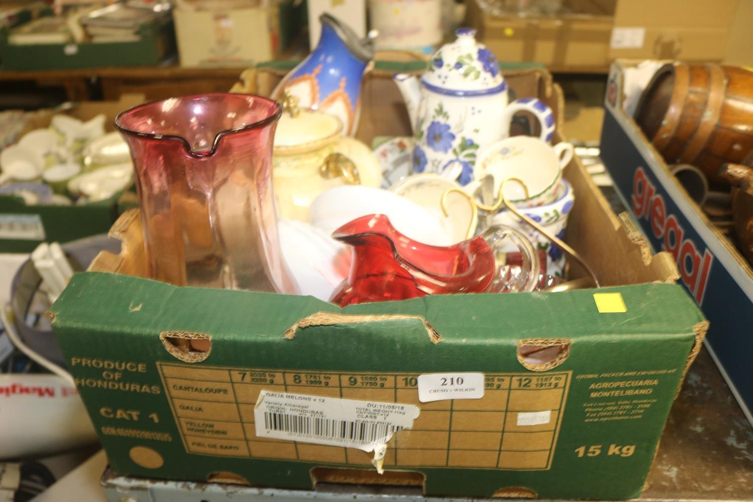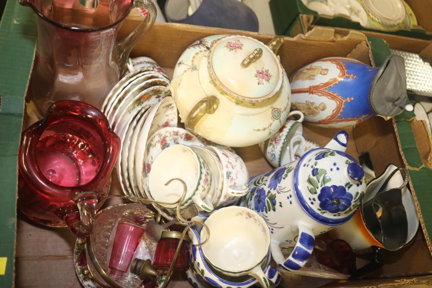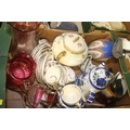 BOX OF MISC. CHINA AND CRANBERRY GLASS