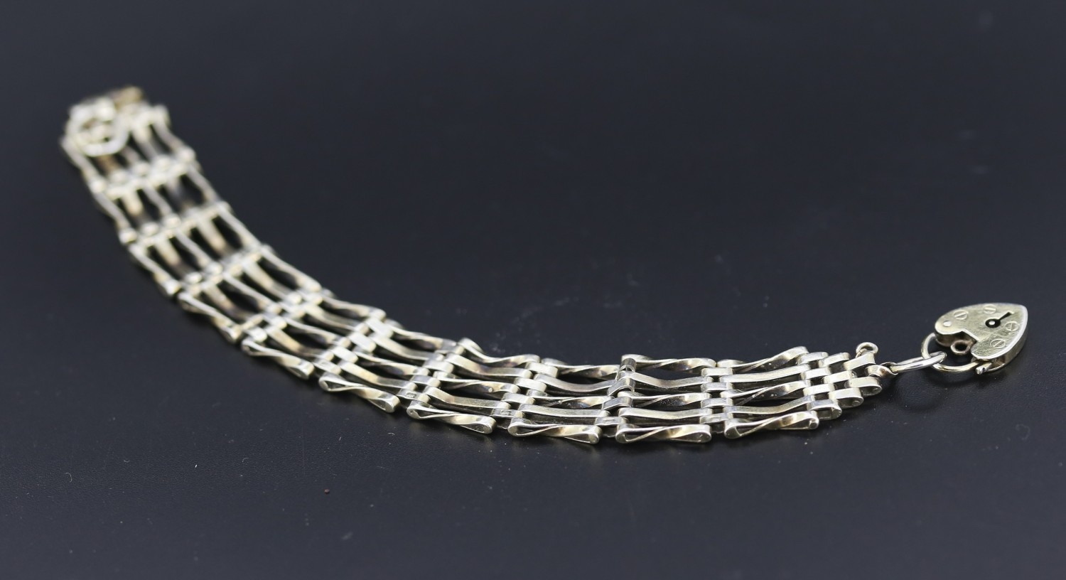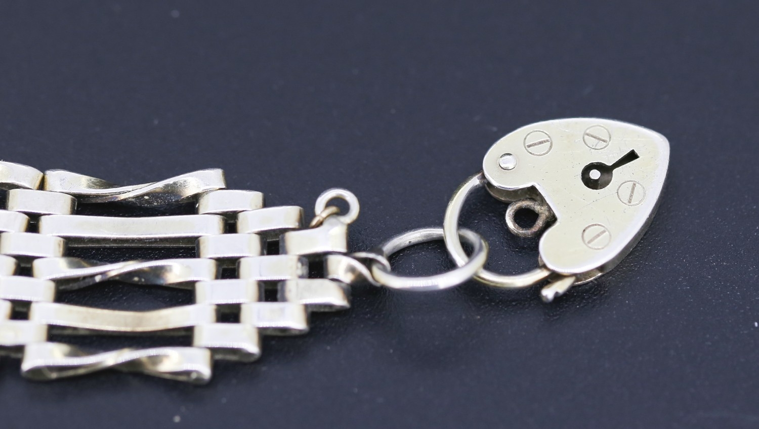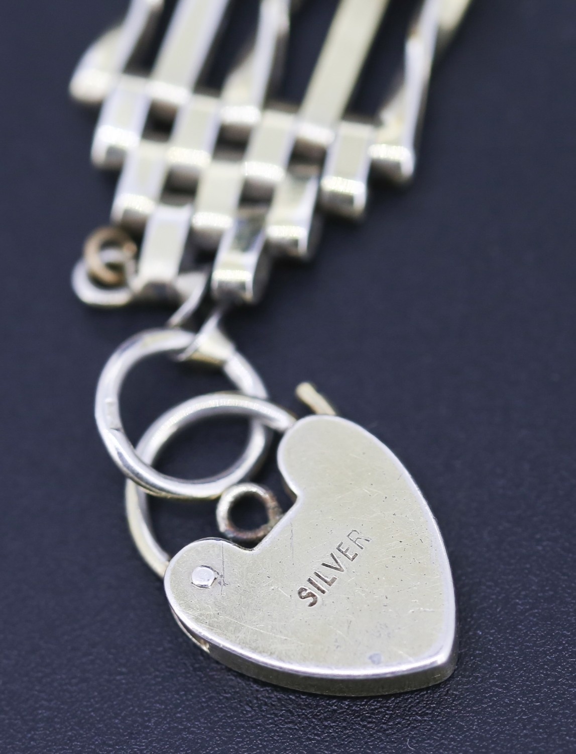 Silver Gate Link Bracelet Heart Padlock Clasp 19cm Long