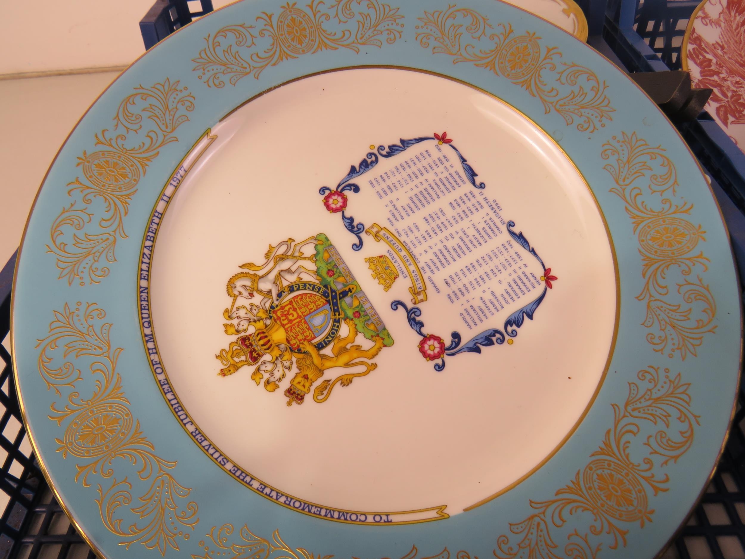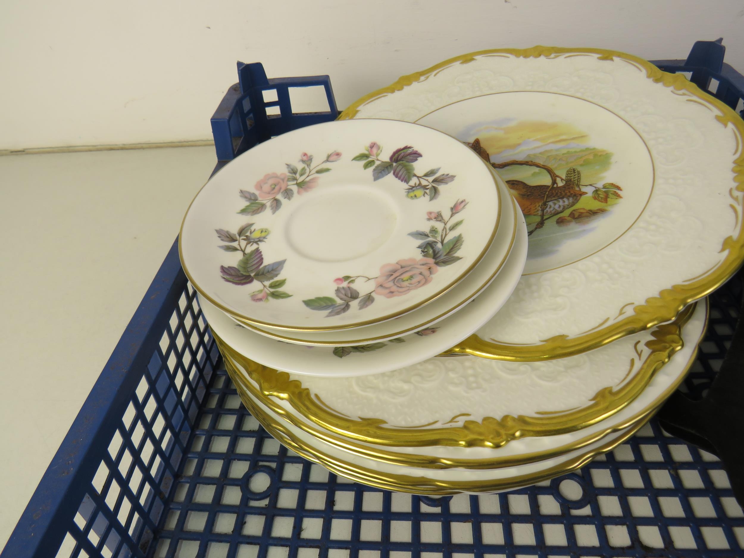 Two trays of assorted plates to include - royal worcester, coalport etc