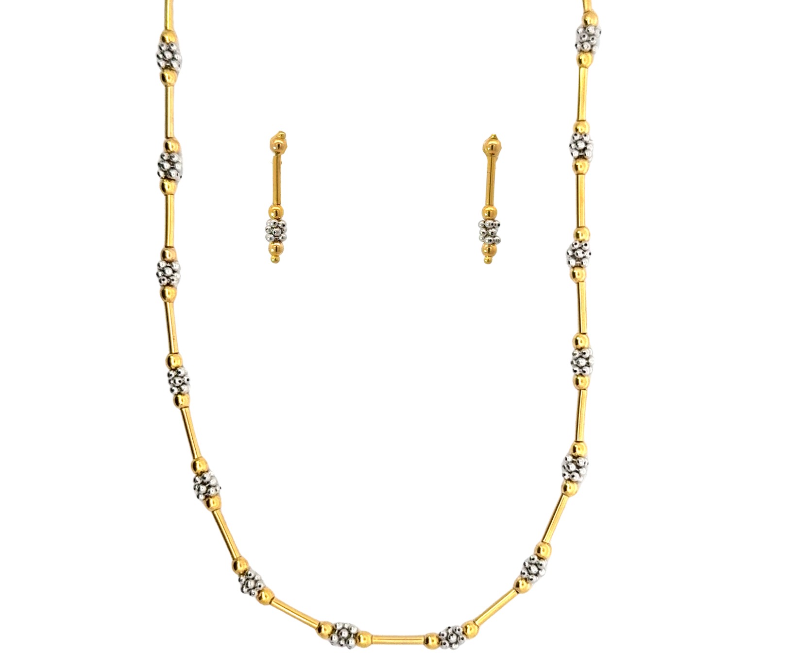 9ct Yellow & White Gold Ball Necklace & Earring Set.12.00g. Very good condition