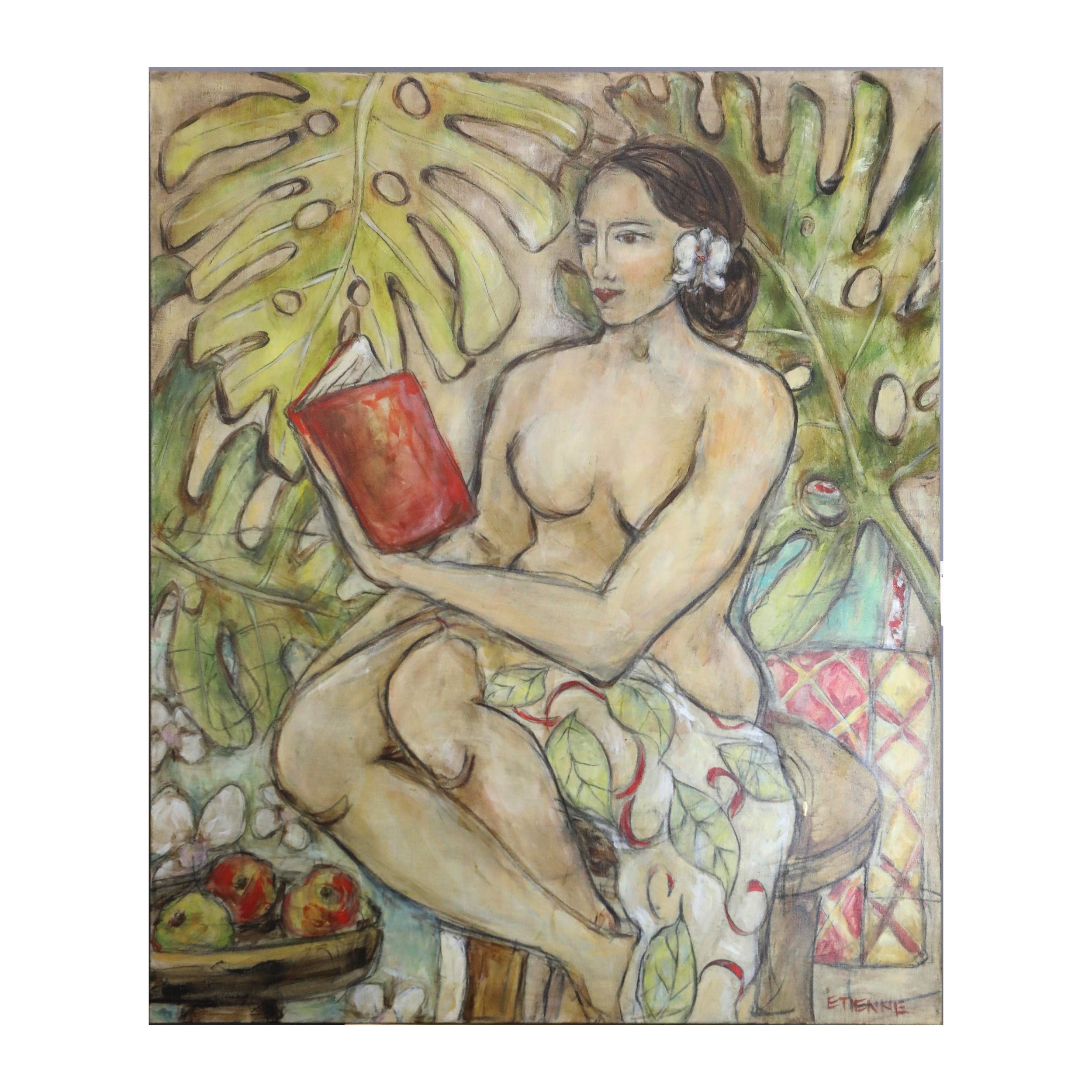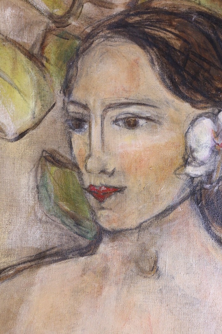 NICOLE ETIENNE. LOTUS. mixed media on linen, 122cm x 102cm.