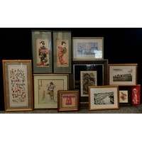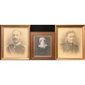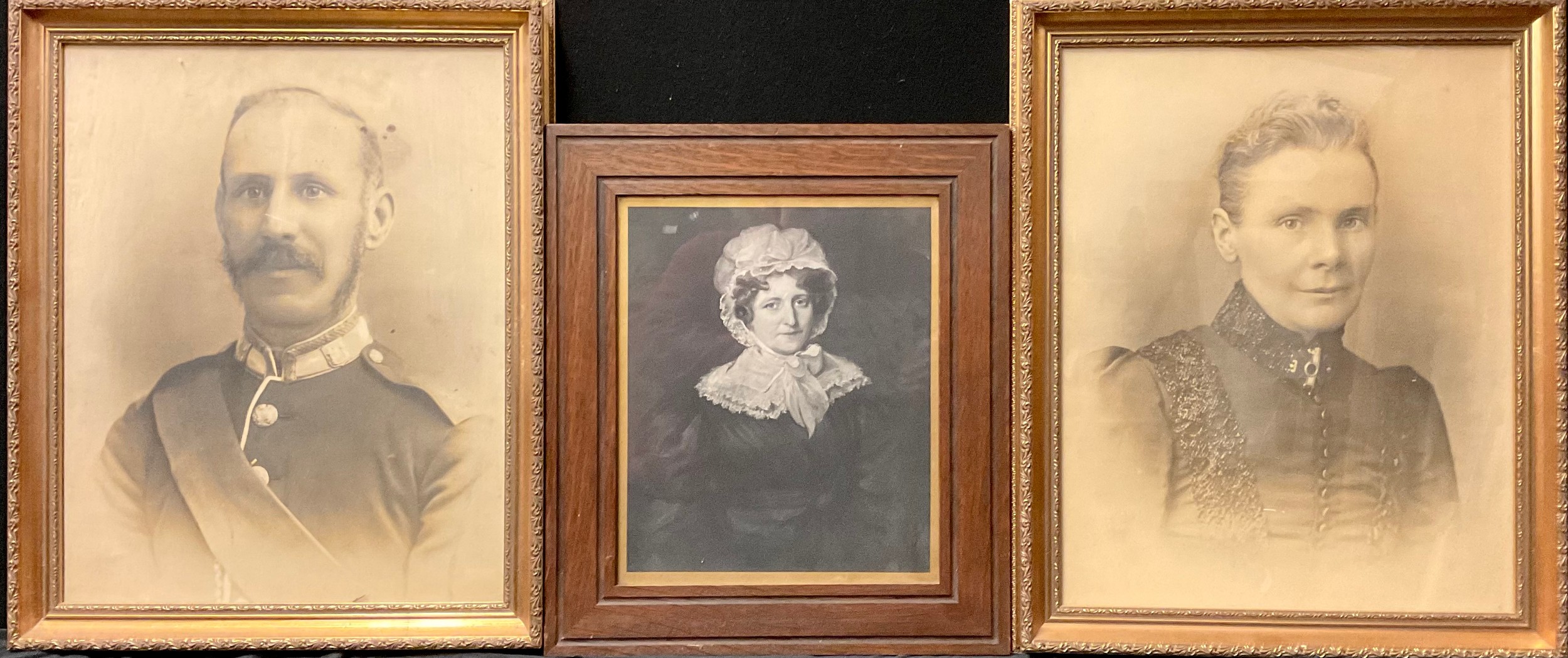 Interior Decoration - Military Interest - a 19th century monochrome furnishing print, portrait of Eliza Sandys, Wife of Colonel William Sandys, 30.5cm x 25.5cm, oak frame; a pair of large photographs, portraits of Charles Henry Thomas, in uniform, and his wife Lucy (nee Brabyn), 46.5cm x 36cm, gilt frames (3)