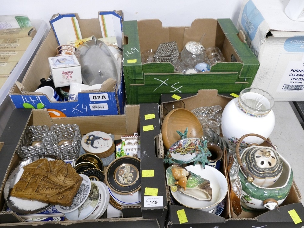 Boxes of trinkets, Oriental items, glassware, tea ware