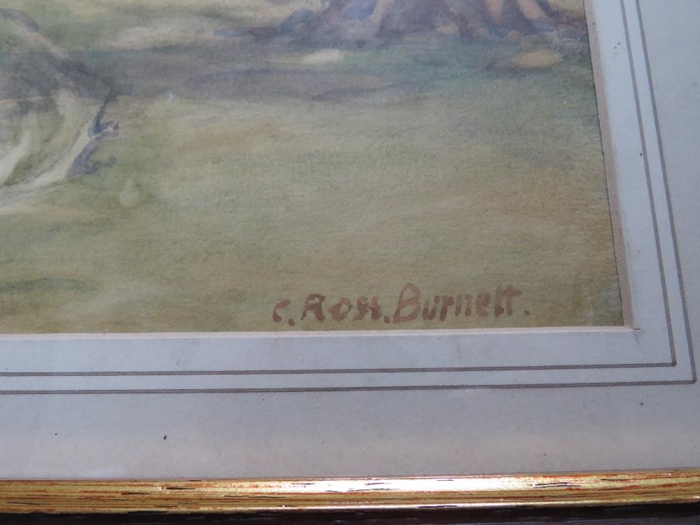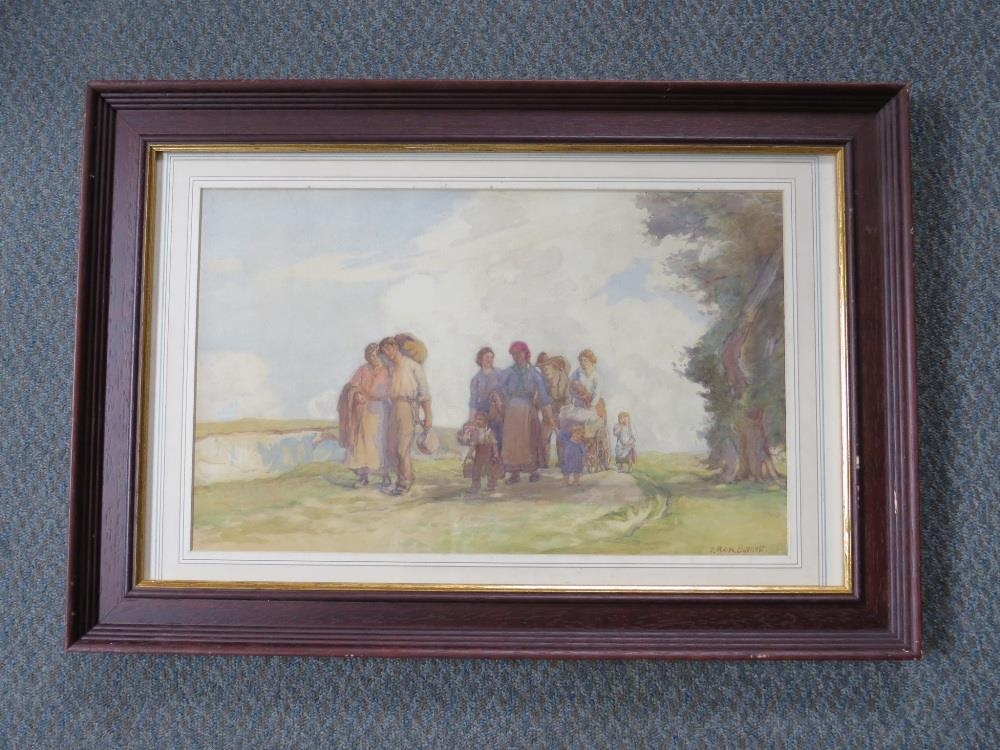 CECIL ROSS BURNETT (1872-1933). 'Travellers on the road to Donegal' see verso, signed lower left, watercolour, framed and glazed, 28 x 46 cm