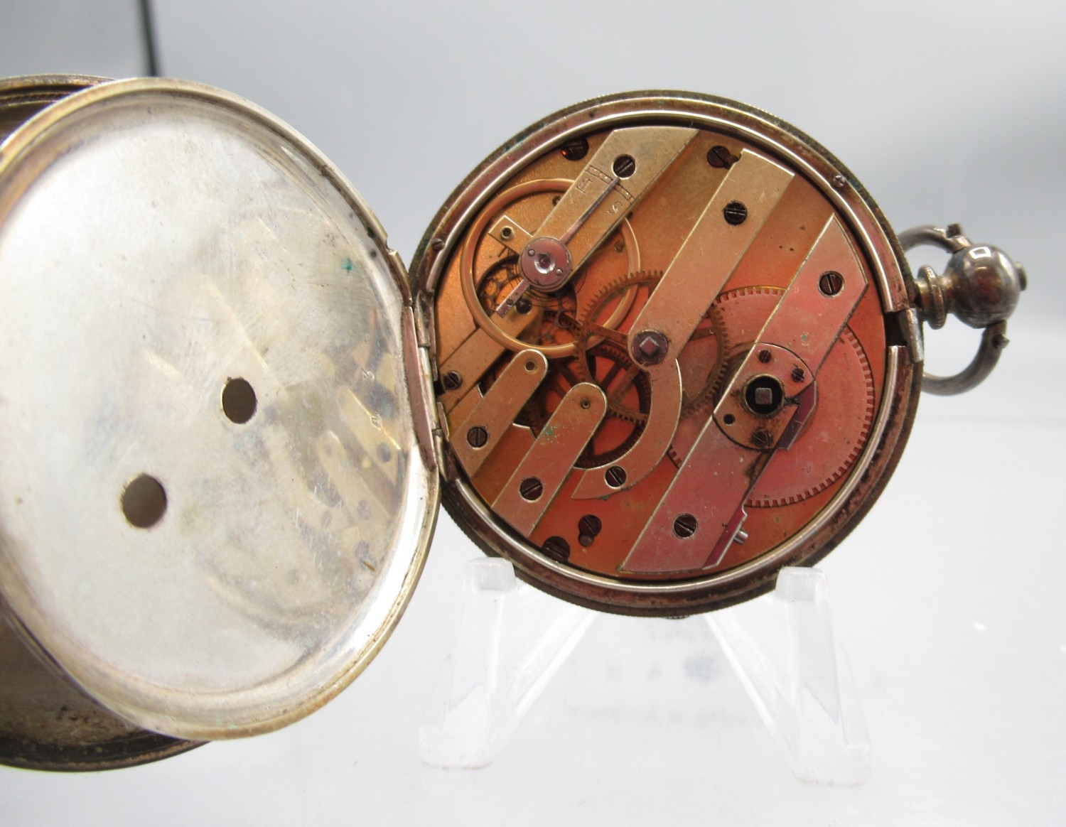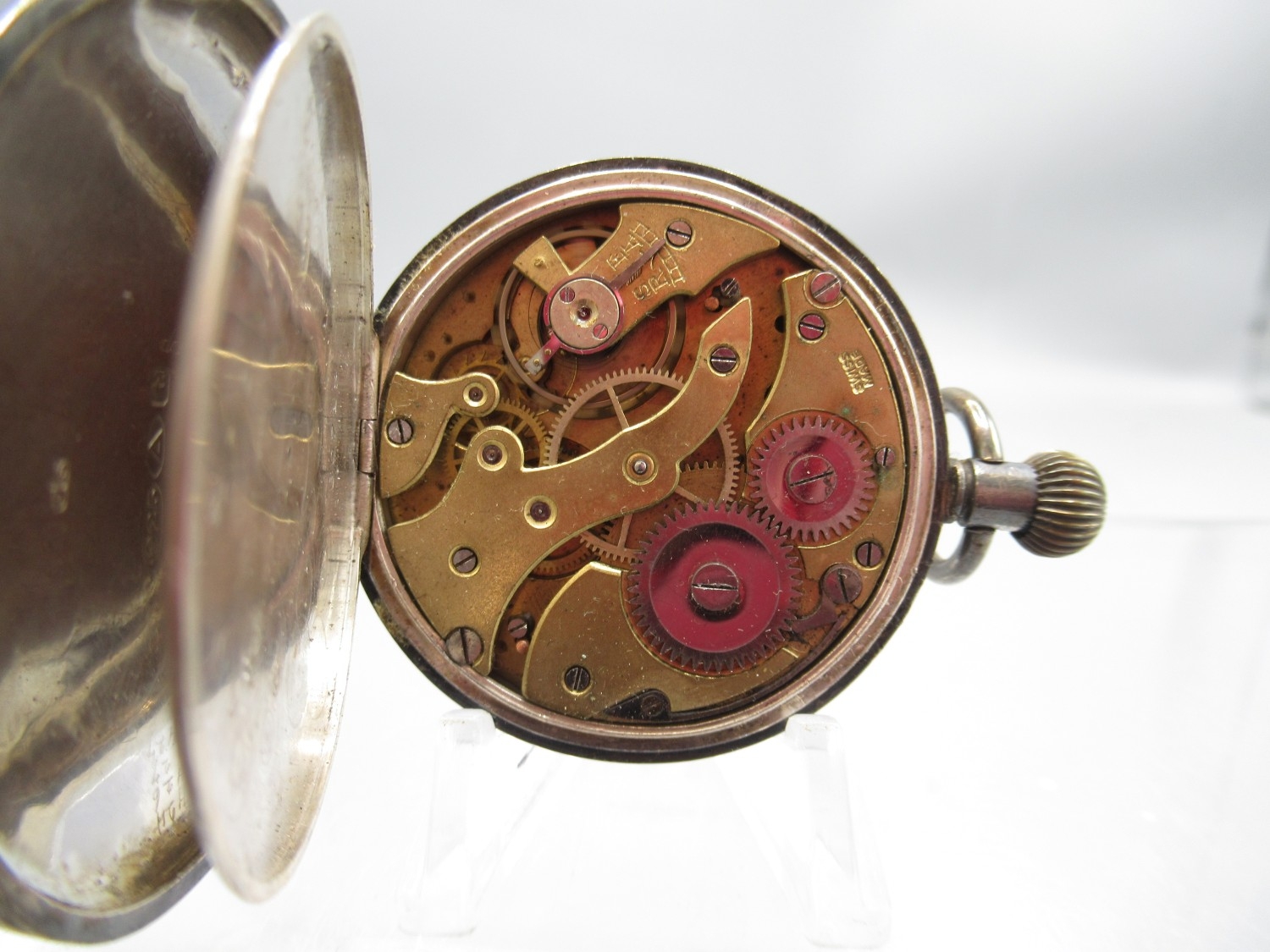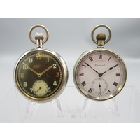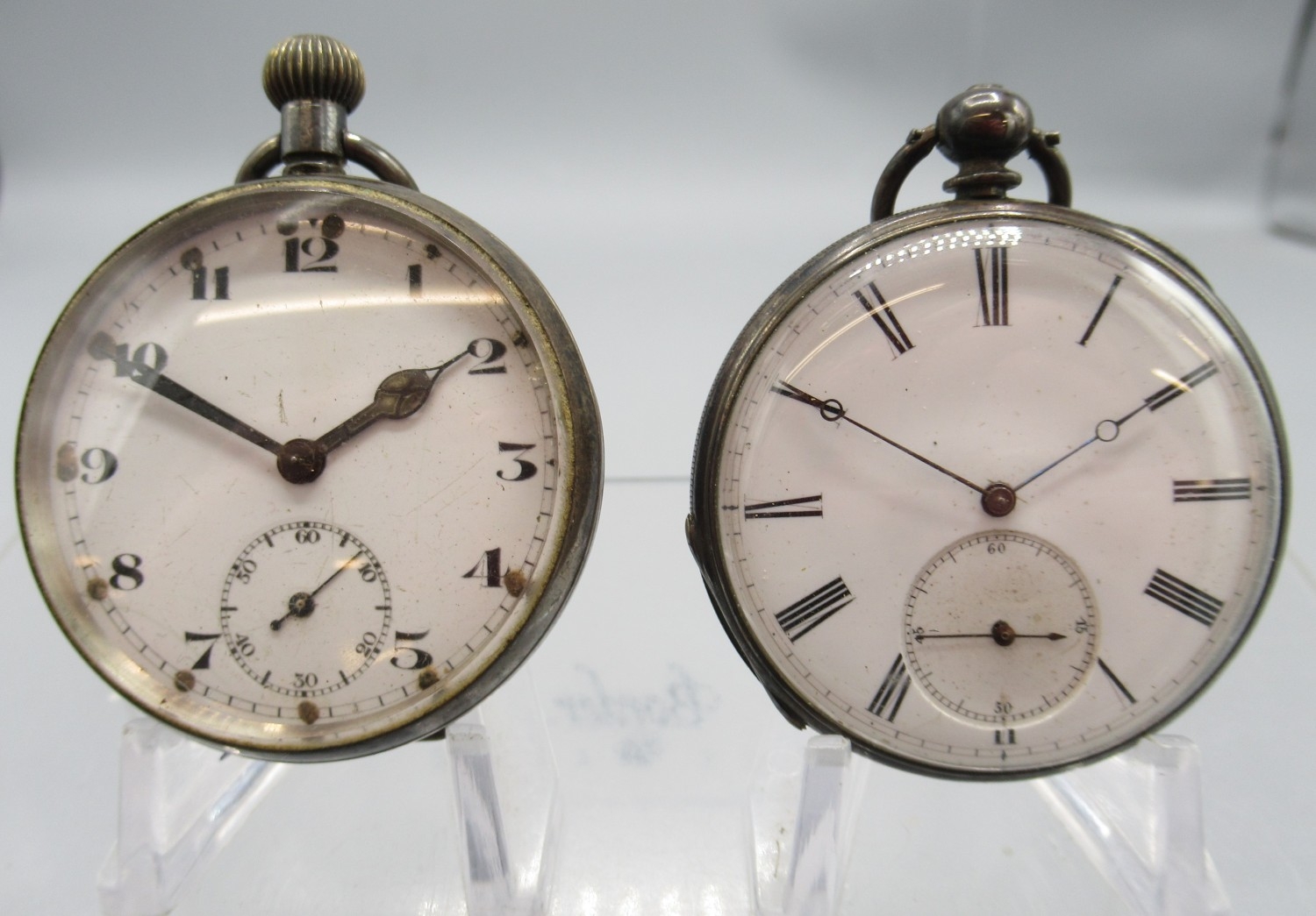 Watches running at time of cataloguing 27/01/26, cylinder case hinge worn and other age related wear.