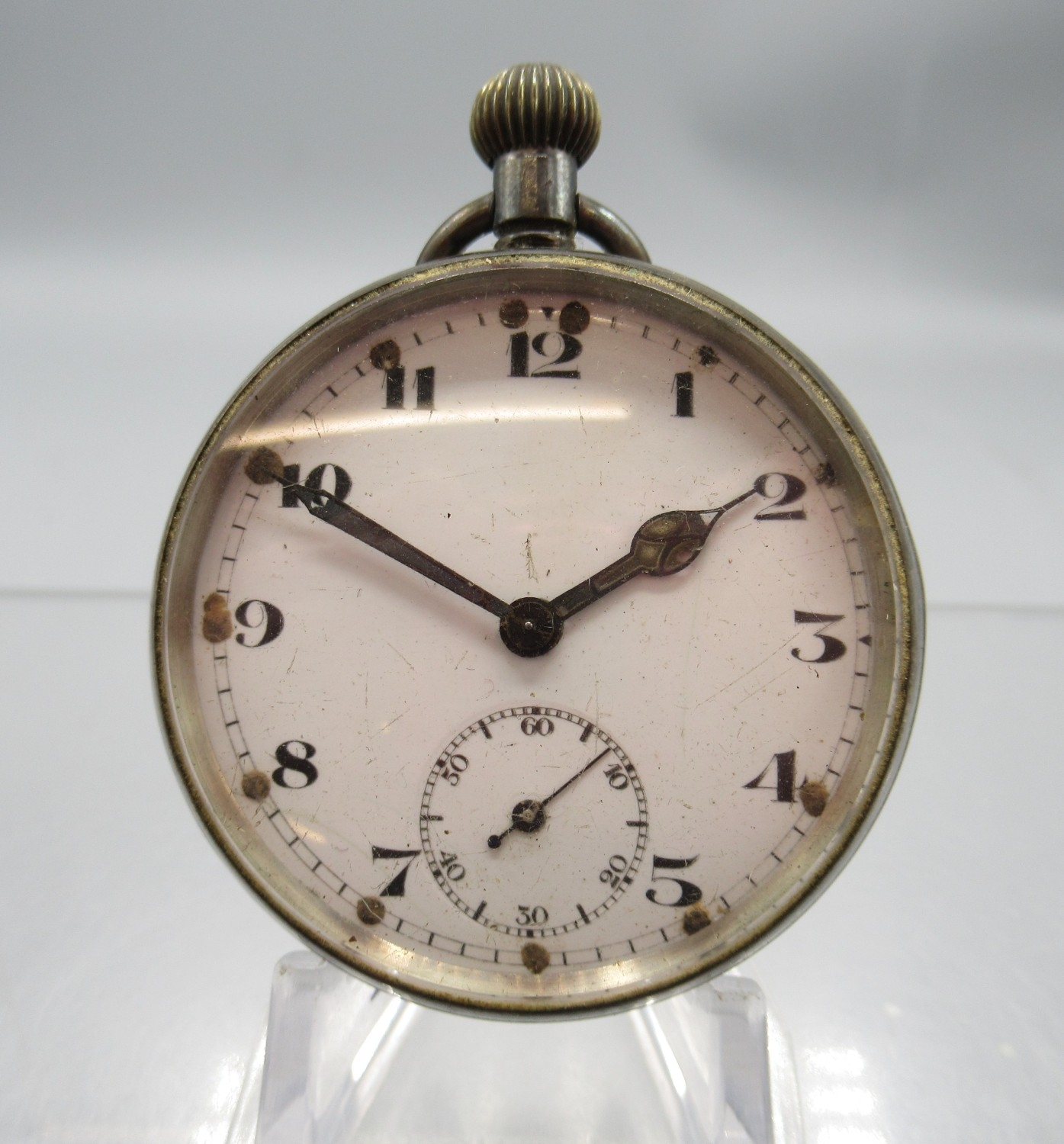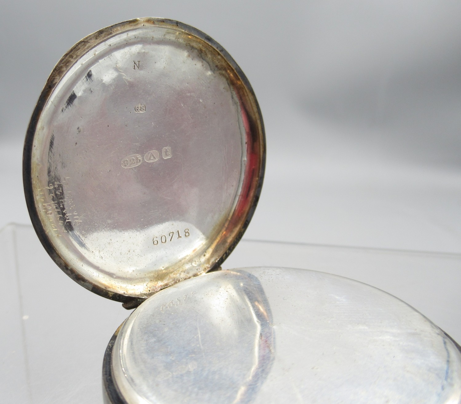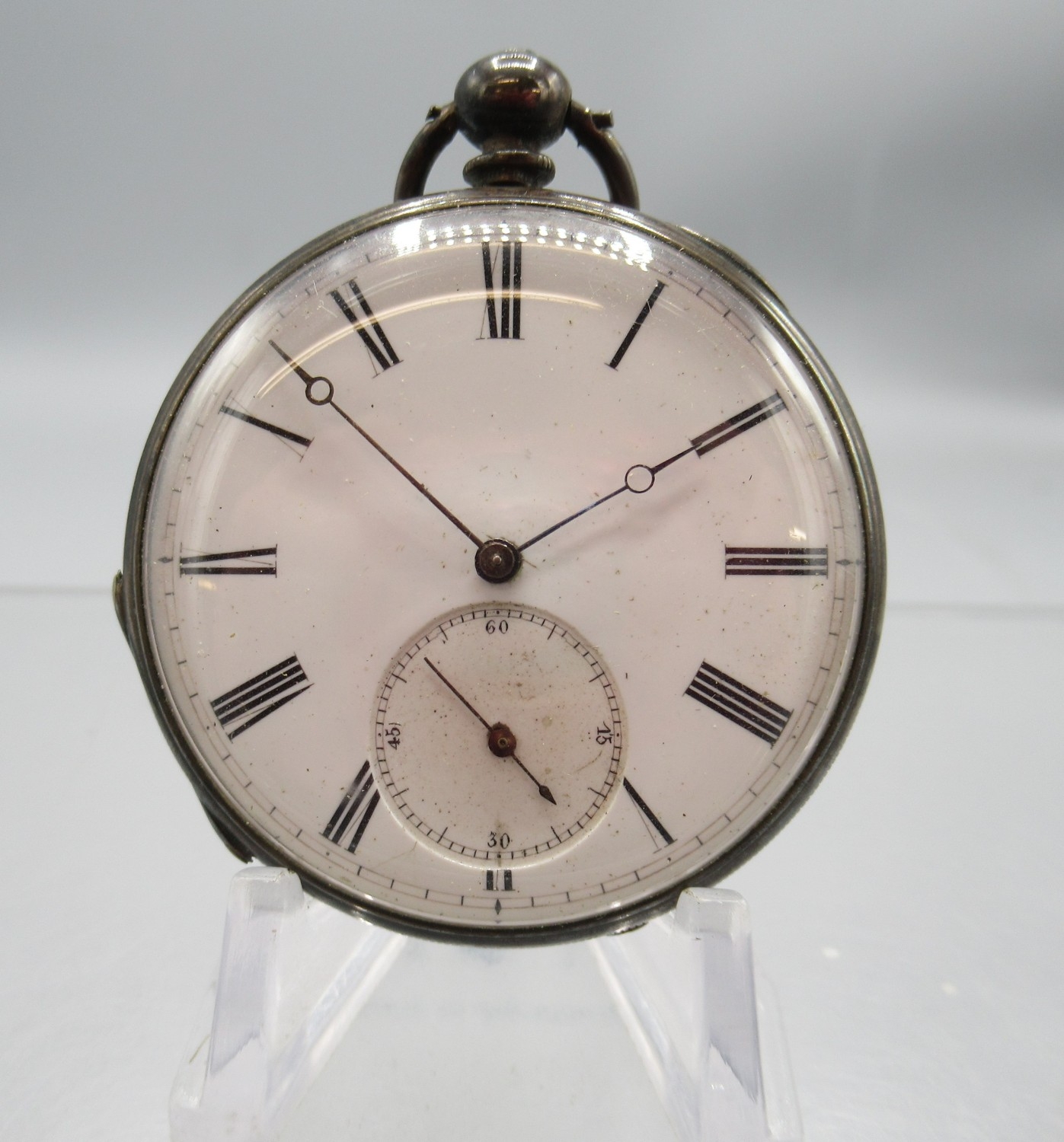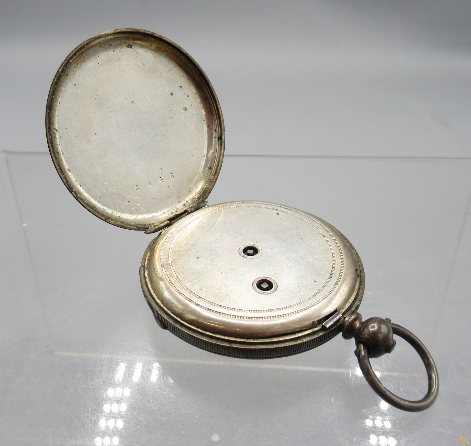 Watches running at time of cataloguing 27/01/26, cylinder case hinge worn and other age related wear.