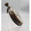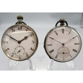 Swiss silver keyless pocket watch, white enamel Arabic dial with subsidiary seconds, hinged case back no. 60718, Birmingham Import Mark 1918, Swiss Made bridge plate movement, gross weight 2.1ozt, 46.6mm and Swiss white metal key wound pocket watch, white enamel Roman dial with subsidiary seconds, bridge plate movement with cylinder escapement, gross weight 1.9ozt, D46.2mm