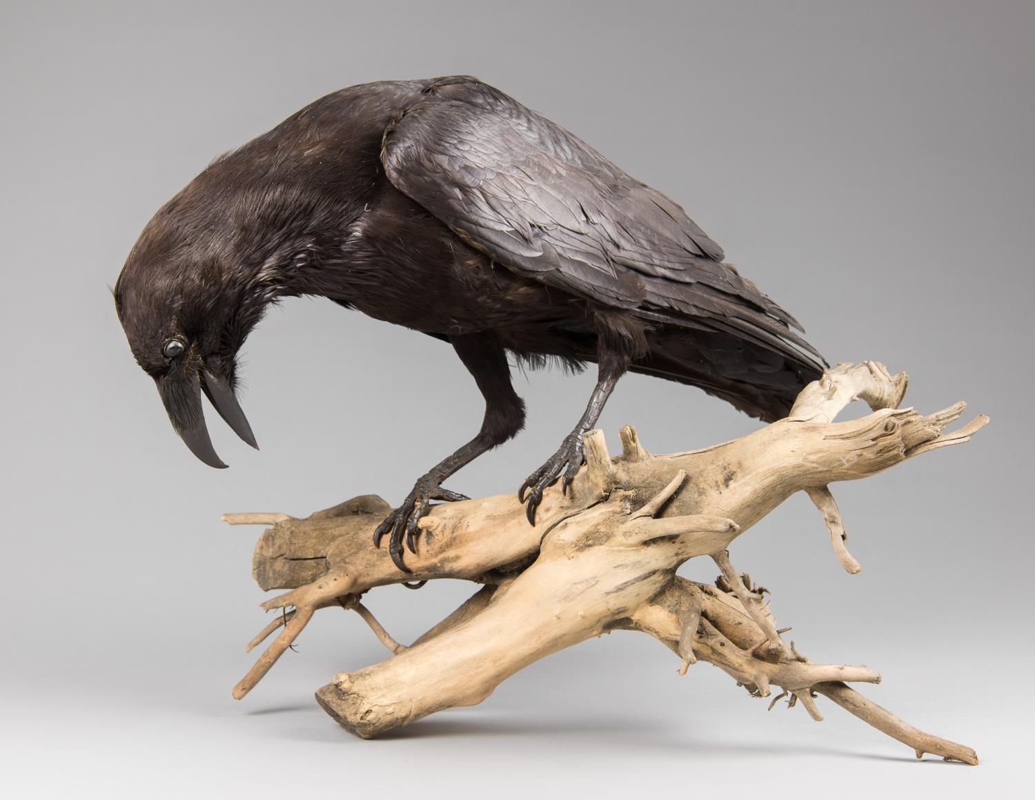 A LATE 20TH CENTURY TAXIDERMY RAVEN UPON A NATURALISTIC BASE.