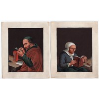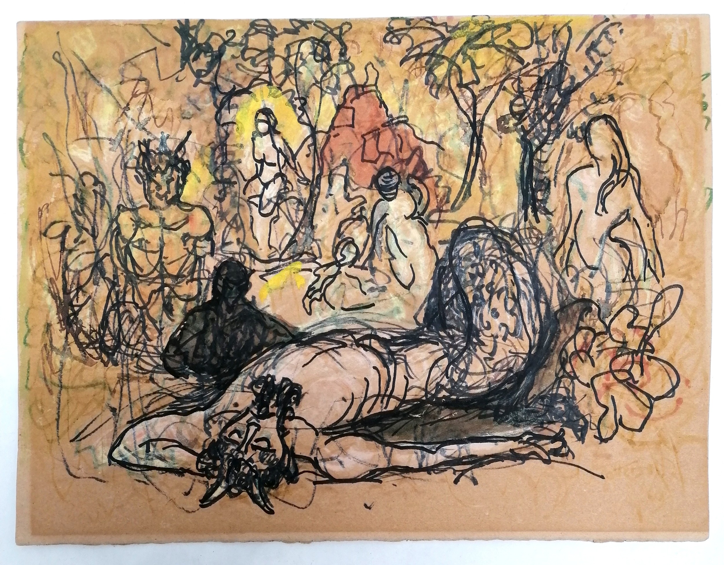 Original mixed media of classical theme inc laying faun - has faint signature ~ 32cm x 25cm