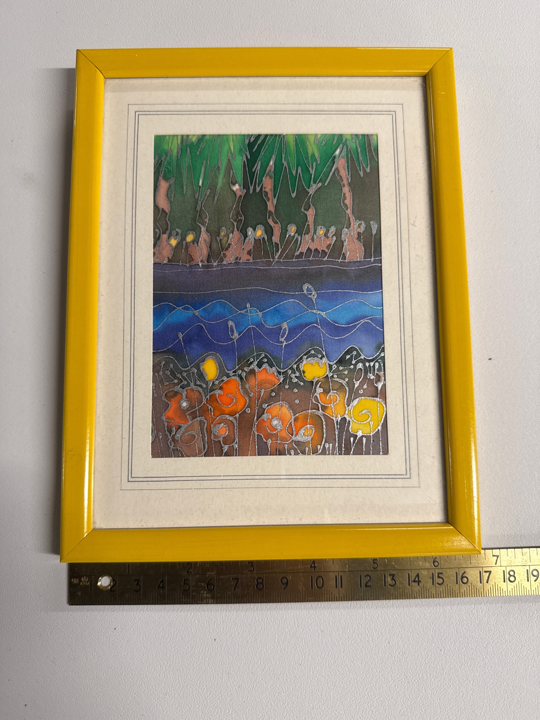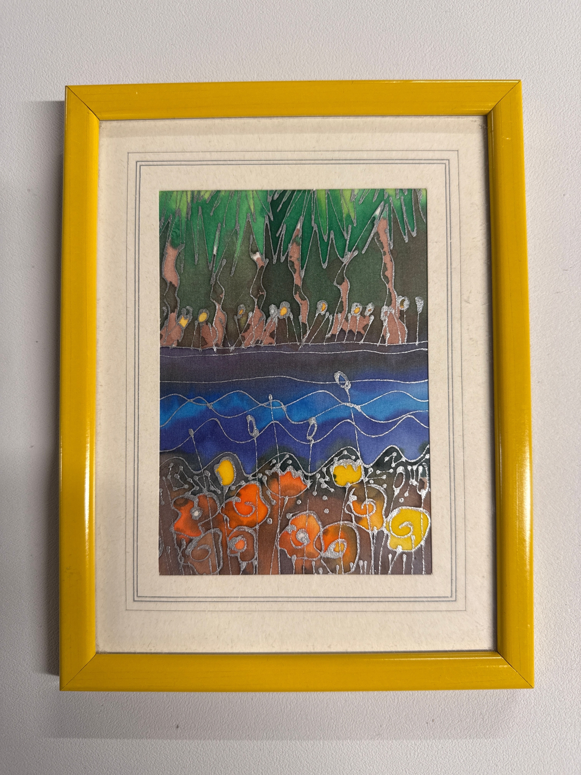 Framed Batik Style Stylized Landscape Artwork