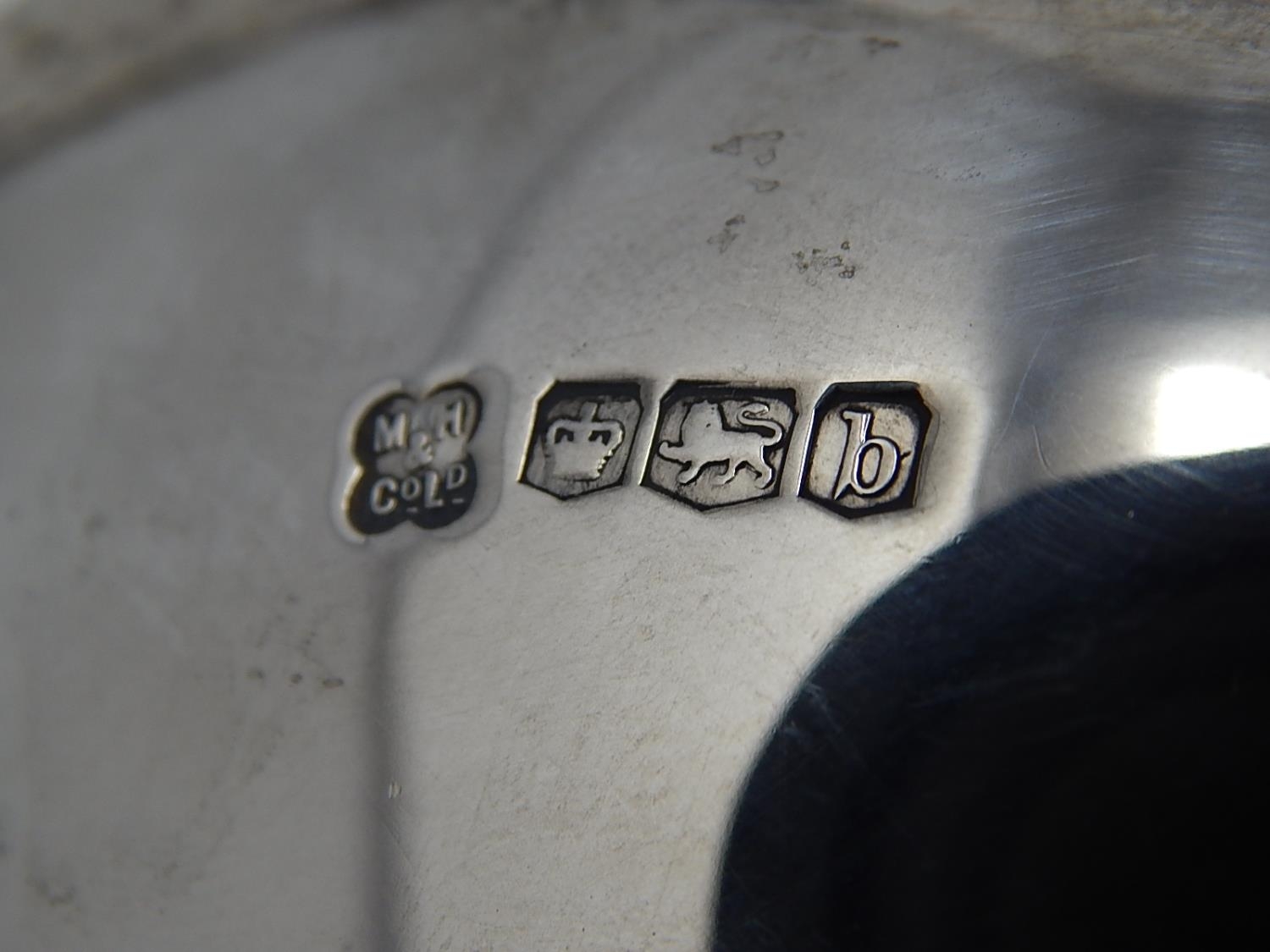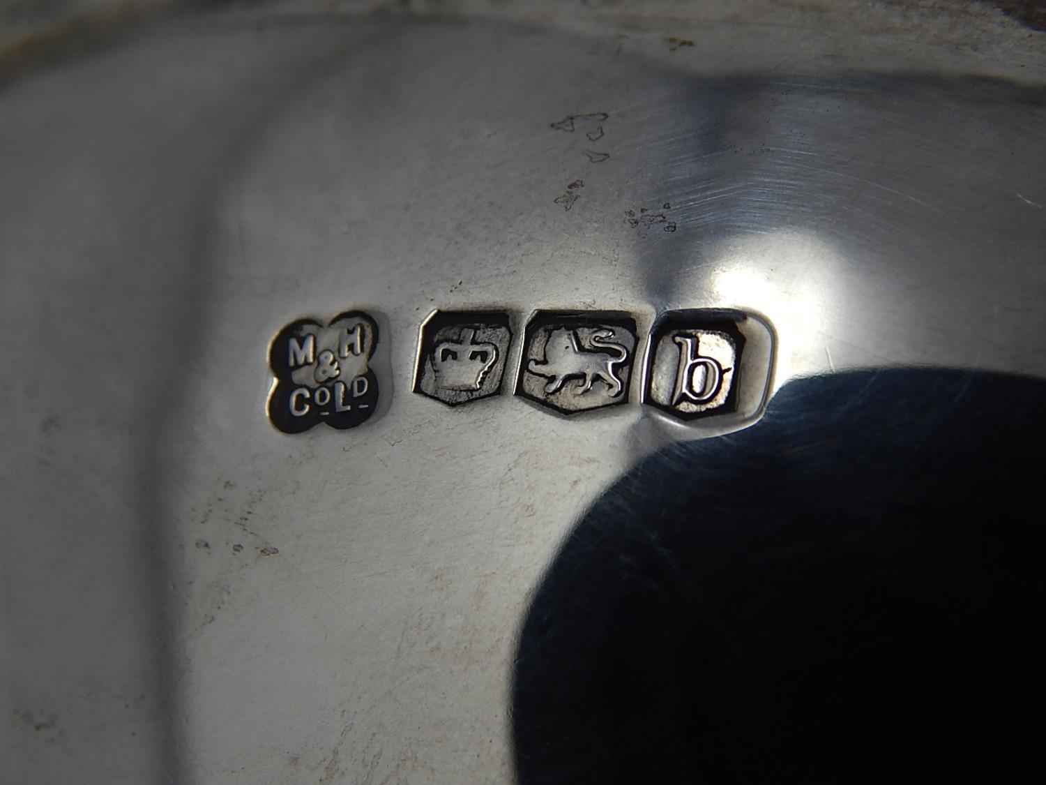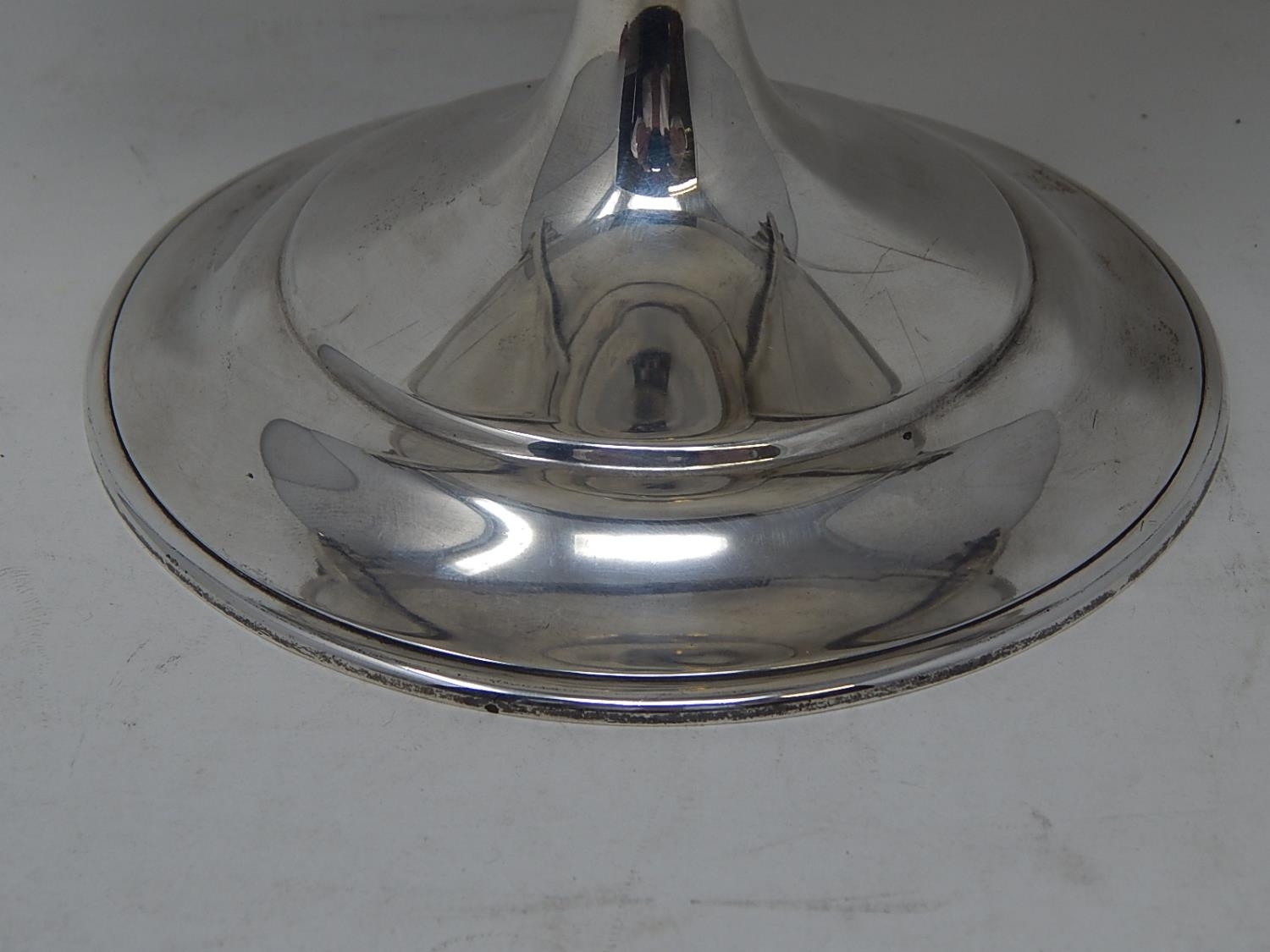 Arts & Crafts Silver Tazza with pierced gallery & stylised twin handles sitting on a conical foot. Hallmarked Sheffield 1919 by Martin Hall & Co. Weight 644g