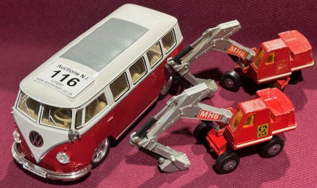 Welly 1962 Model VW Camper + 2x Matchbox Hydraulic Excavators