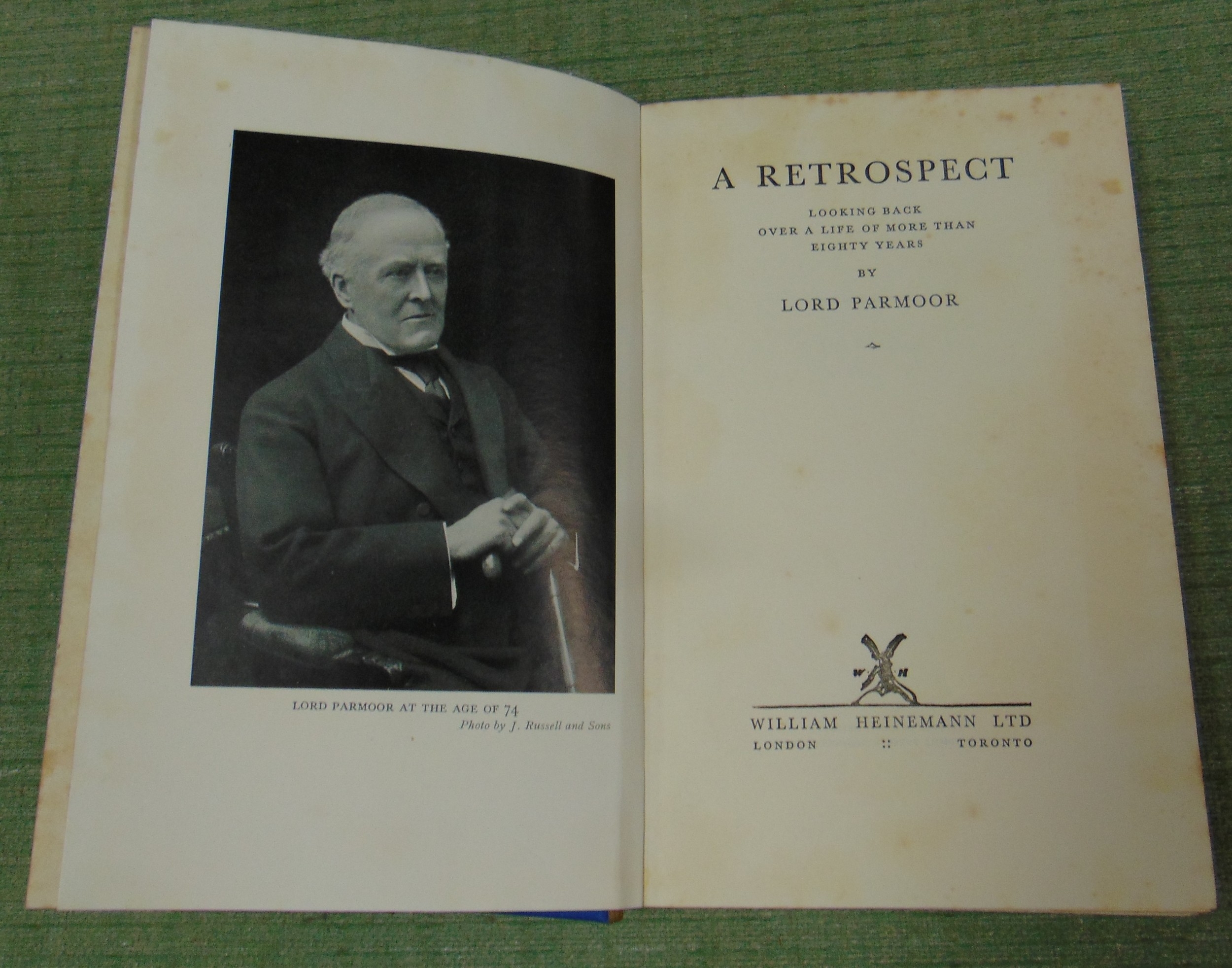 Lord Parmoor, A Retrospect - Looking back over a life of more than eighty years, 1st Edition.
