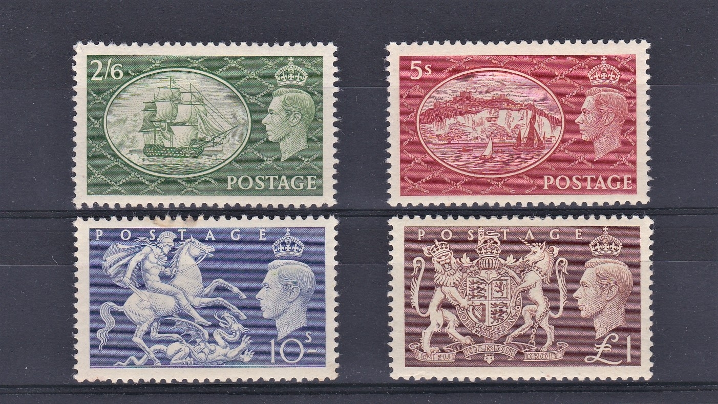 Great Britain 1951 High values 2/6 to £1, very lightly mounted, including SG 509-512. Cat £100