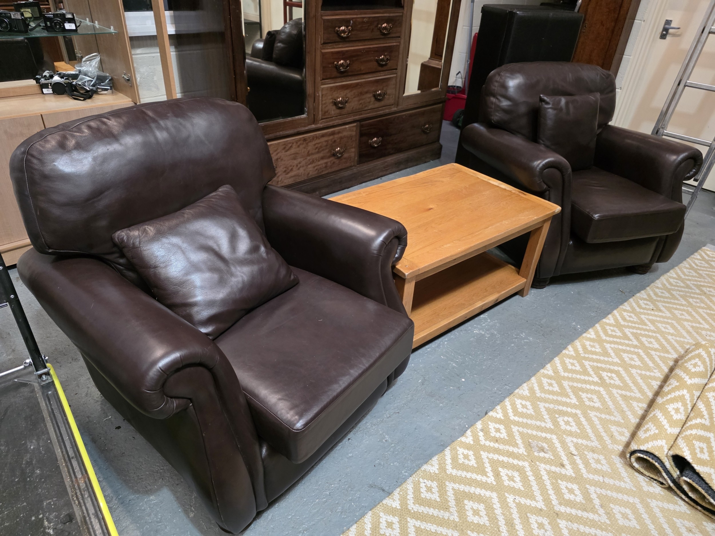 PAIR OF BROWN LEATHER ARMCHAIRS