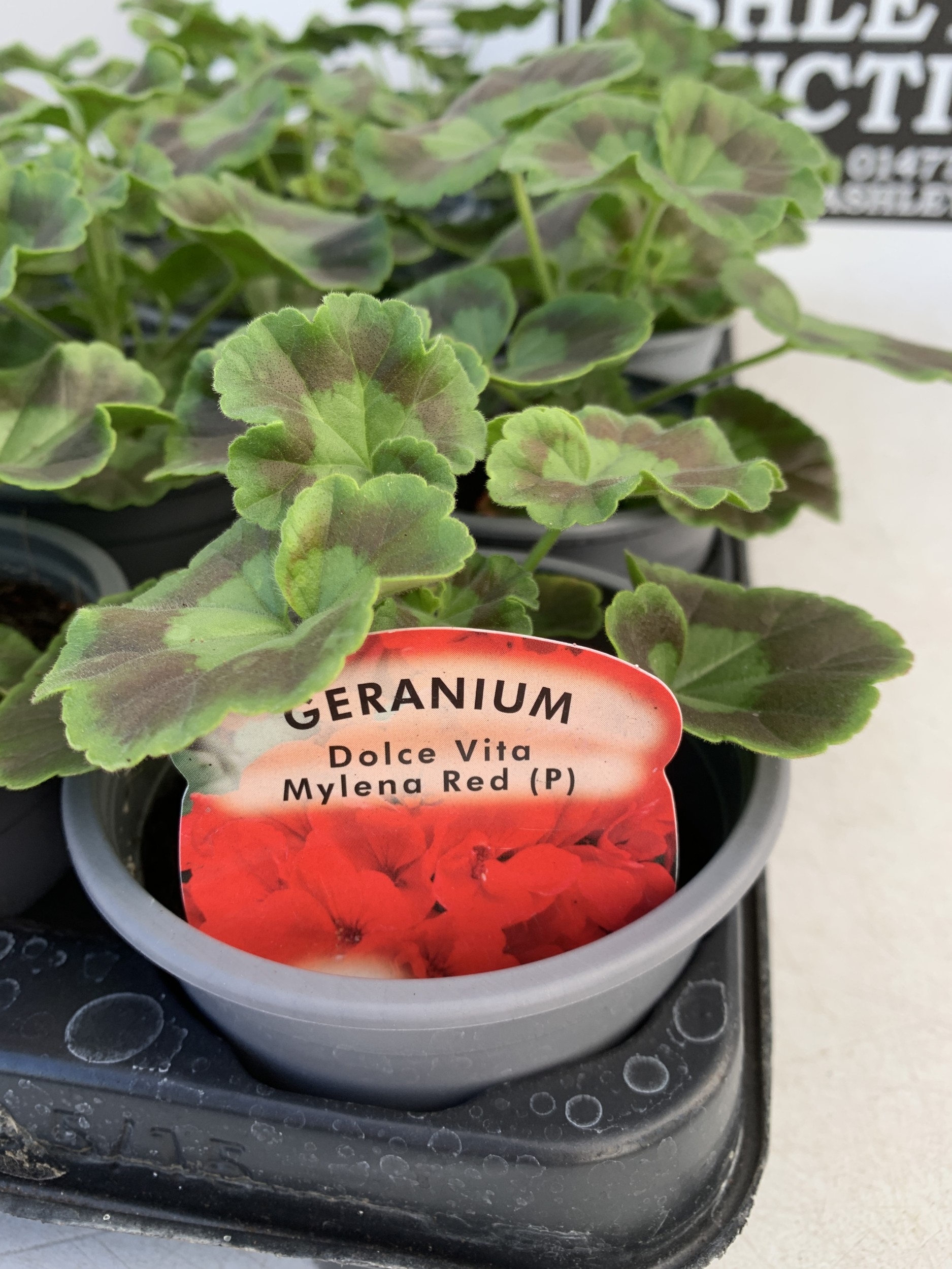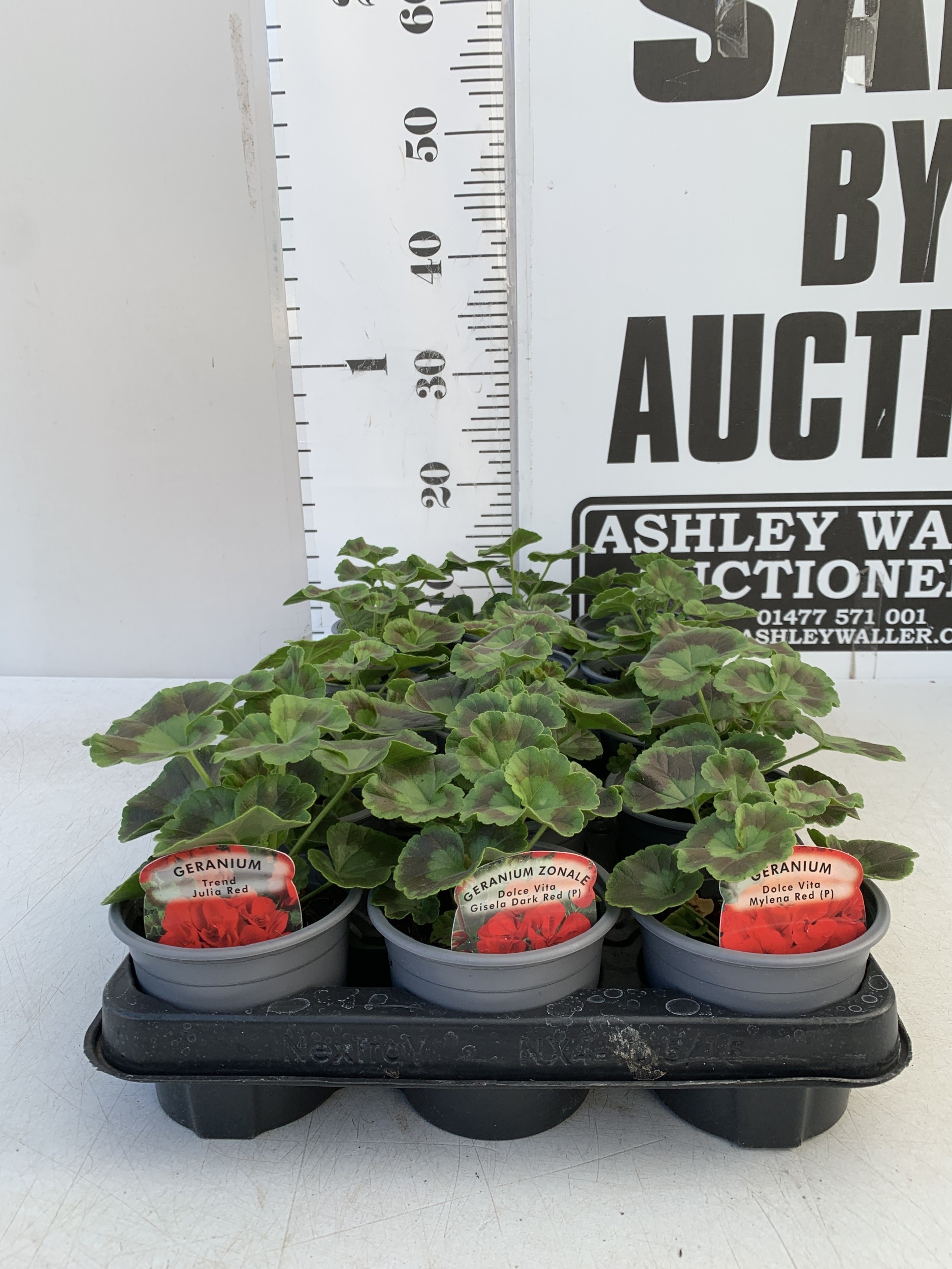 FIFTEEN MIXED GERANIUM 'DOLCE VITA MYLENA RED', 'TREND JULIA RED' AND 'DOLCE VITA GISELA DARK RED' IN P8CM POTS ON A TRAY. TO BE SOLD FOR THE FIFTEEN.
