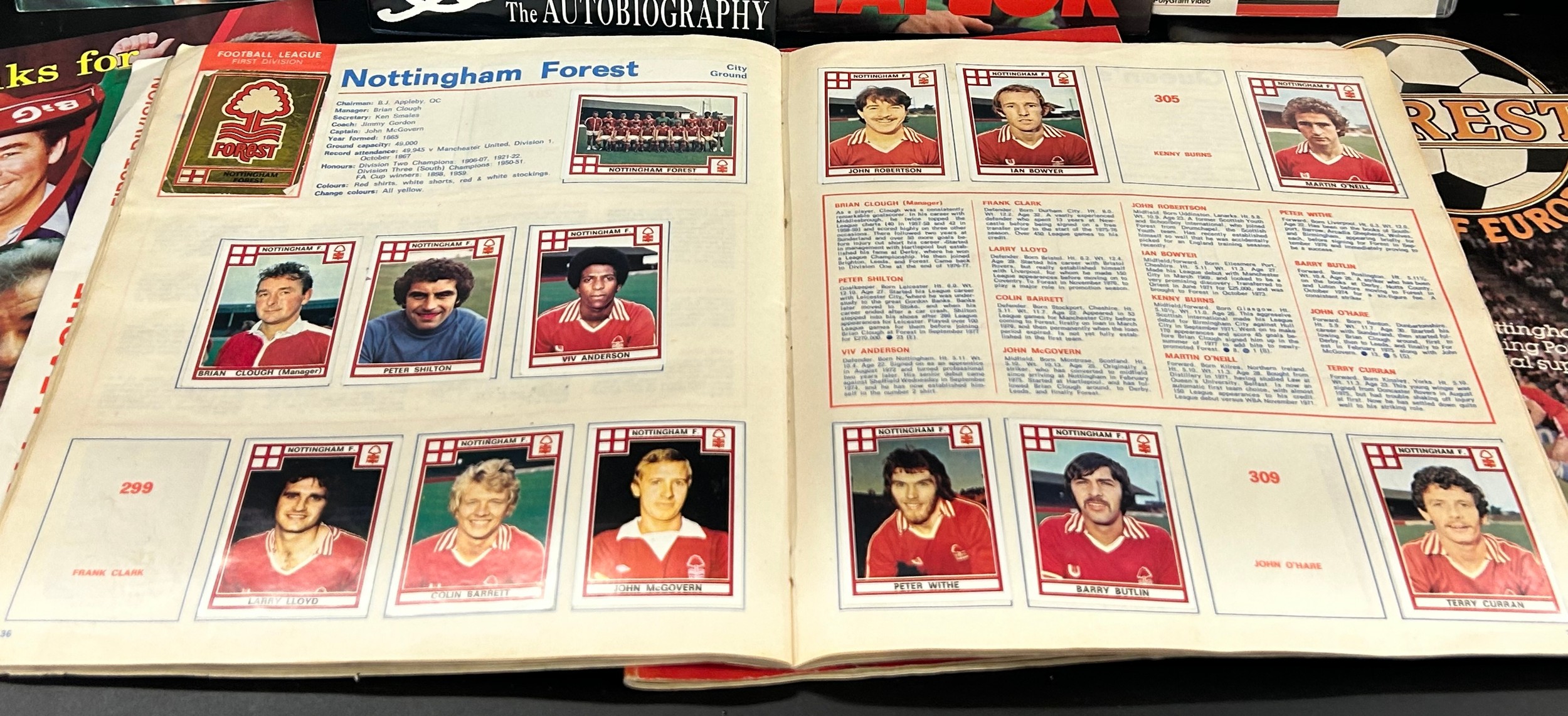 Nottingham Forest and Brian Clough autobiography, commemorative publications, and a Panini 1978 album