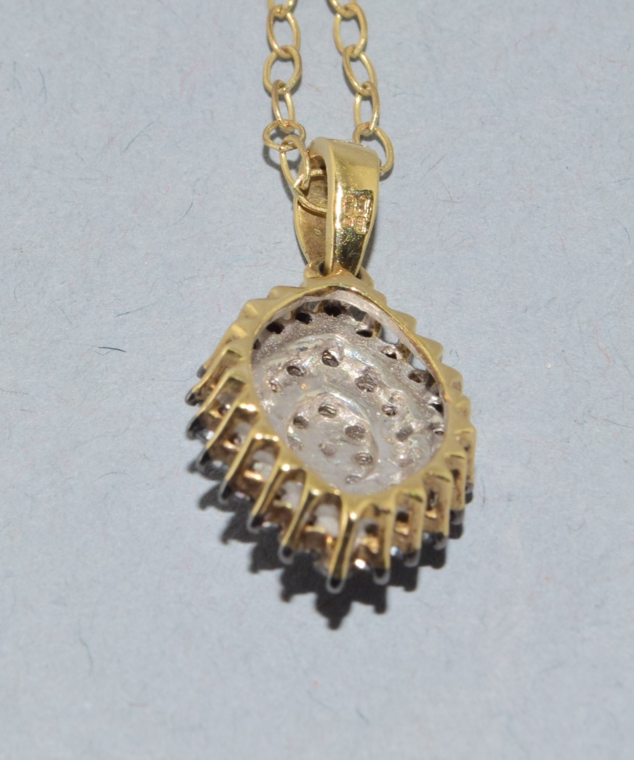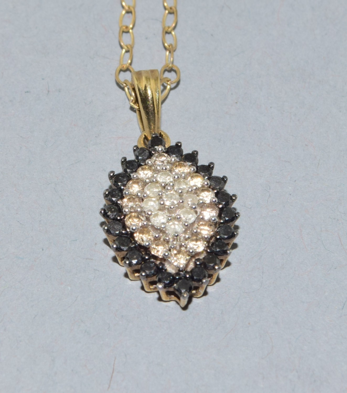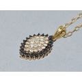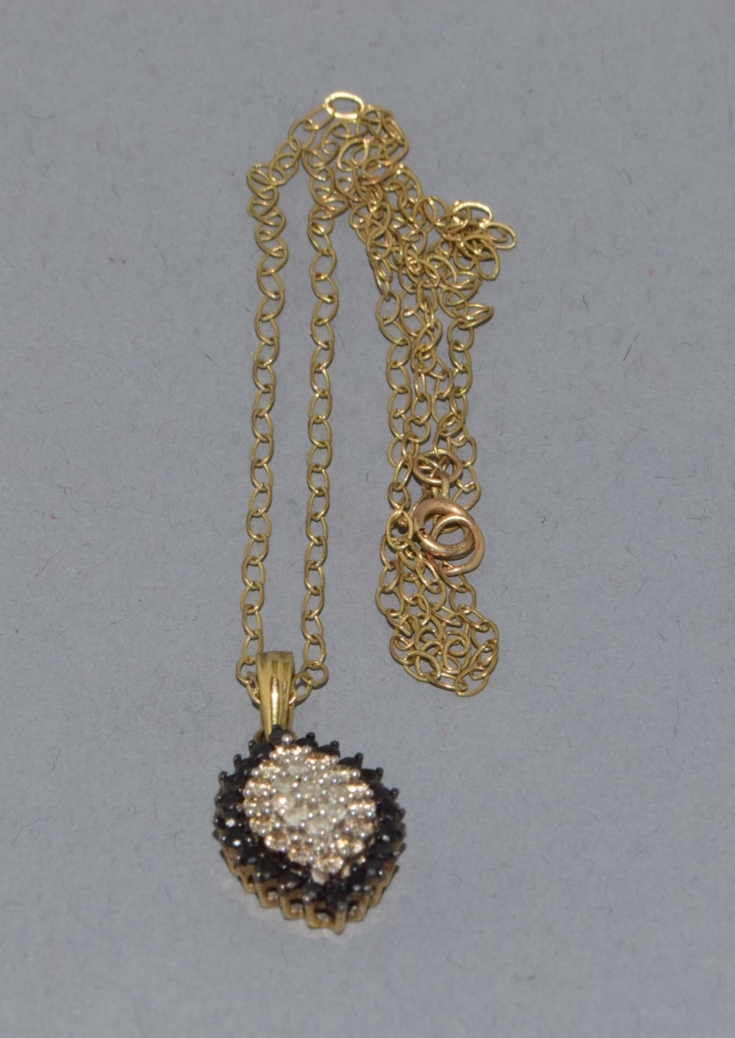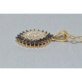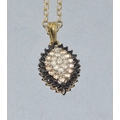 9ct gold superb Diamond and Sapphire marquise shape pendant necklace on a 9ct gold chain 44cm long 3.1grams
