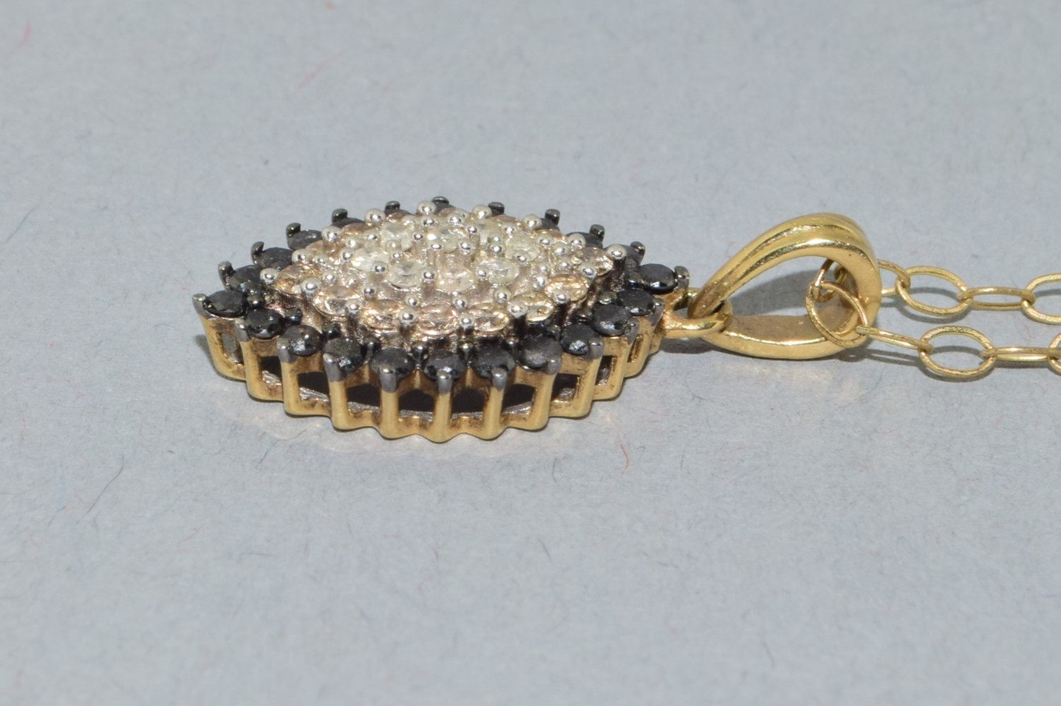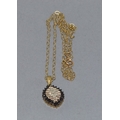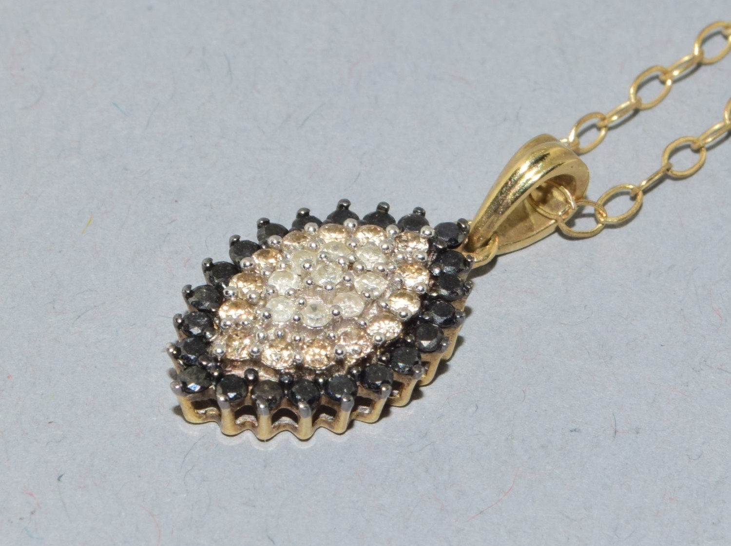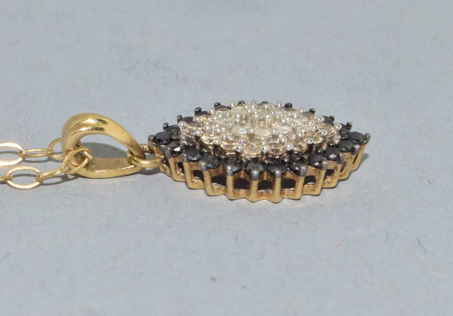 9ct gold superb Diamond and Sapphire marquise shape pendant necklace on a 9ct gold chain 44cm long 3.1grams