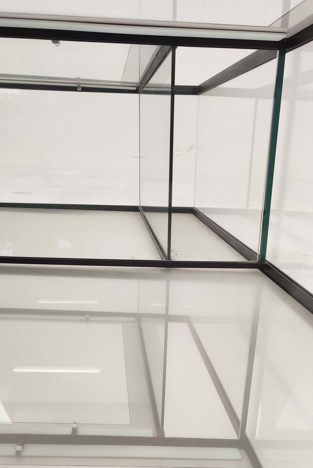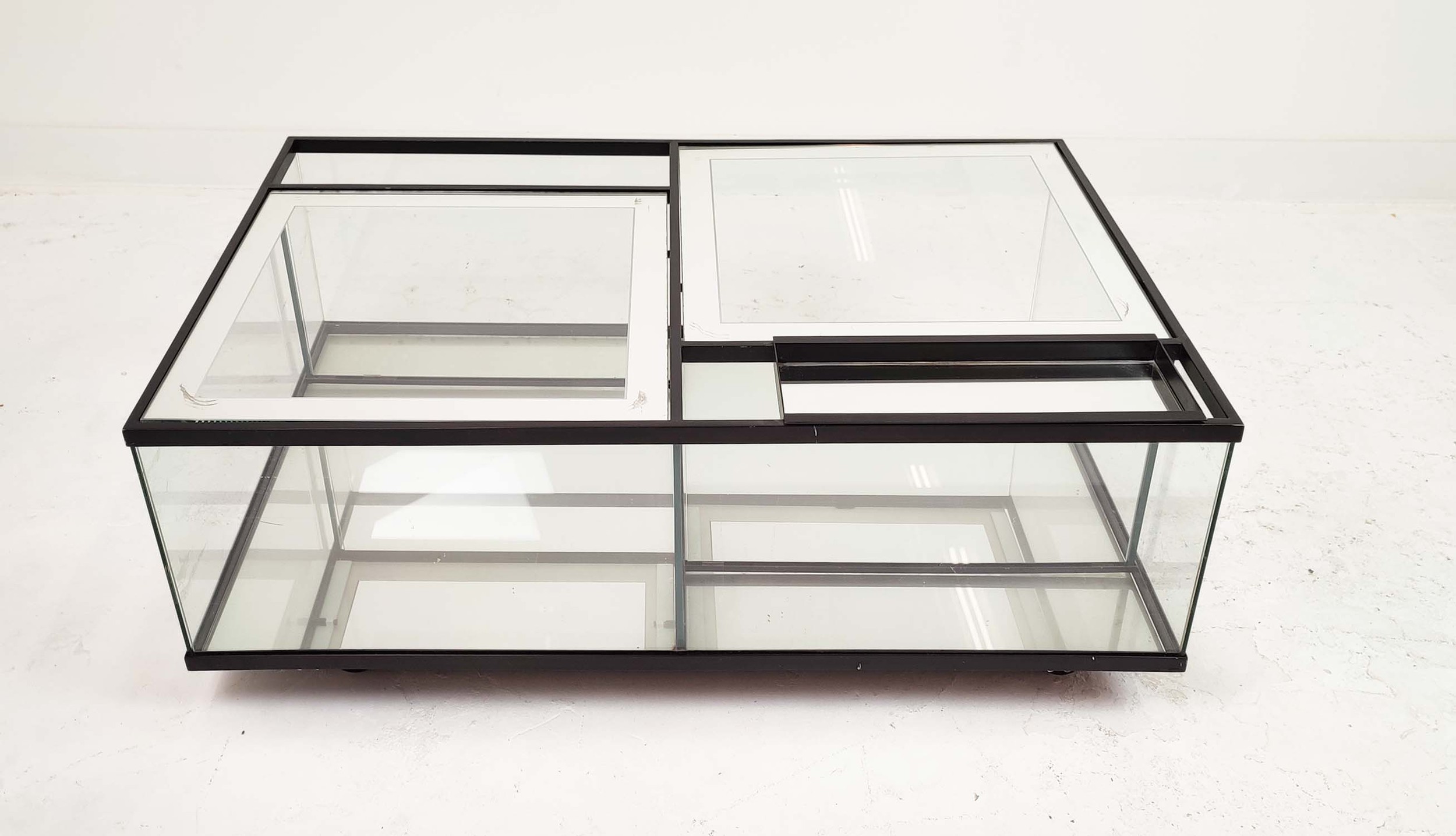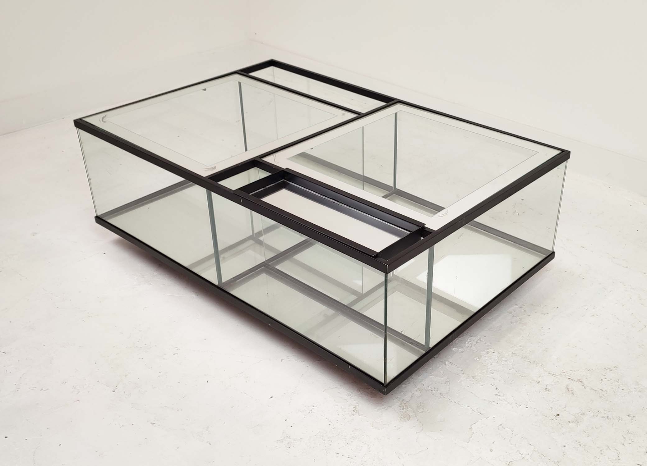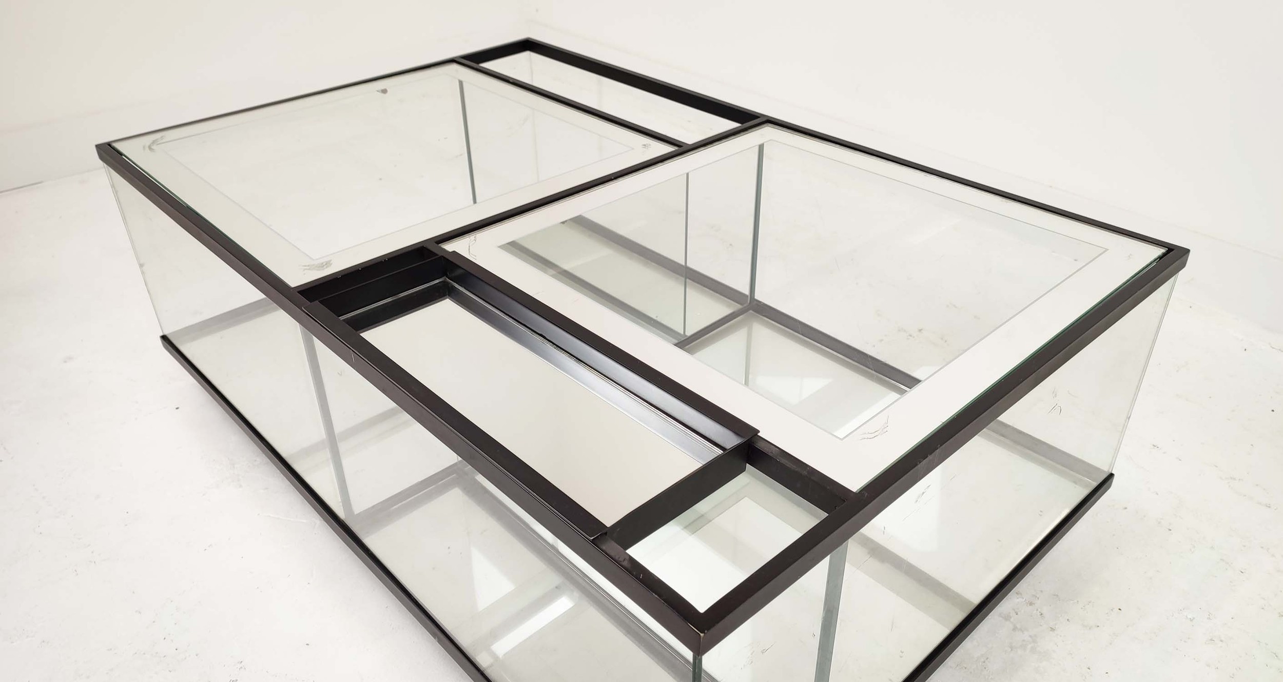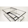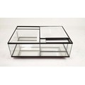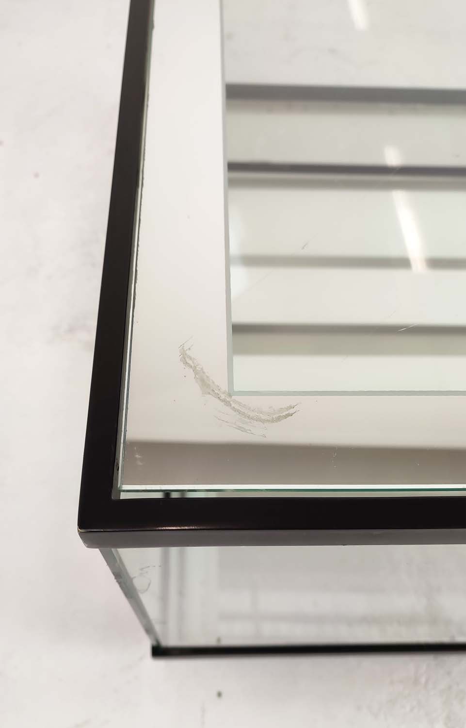 LOW TABLE, glass with mirrored borders and a black metal frame, 68cm D x 107cm L x 40cm H.
