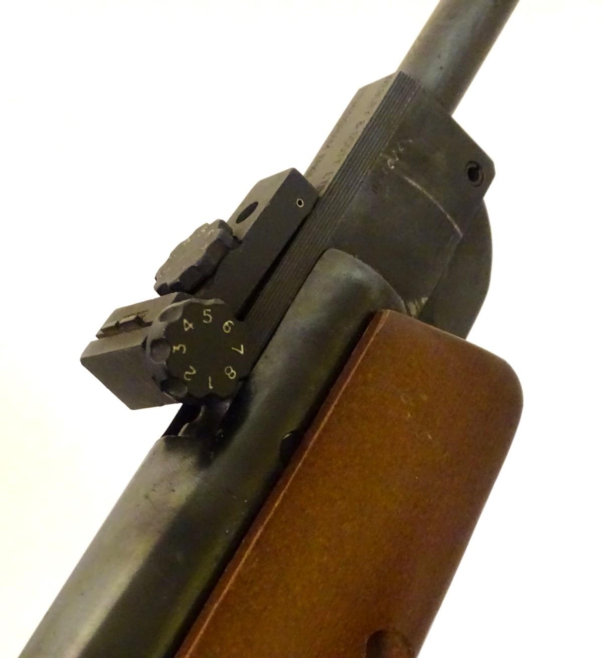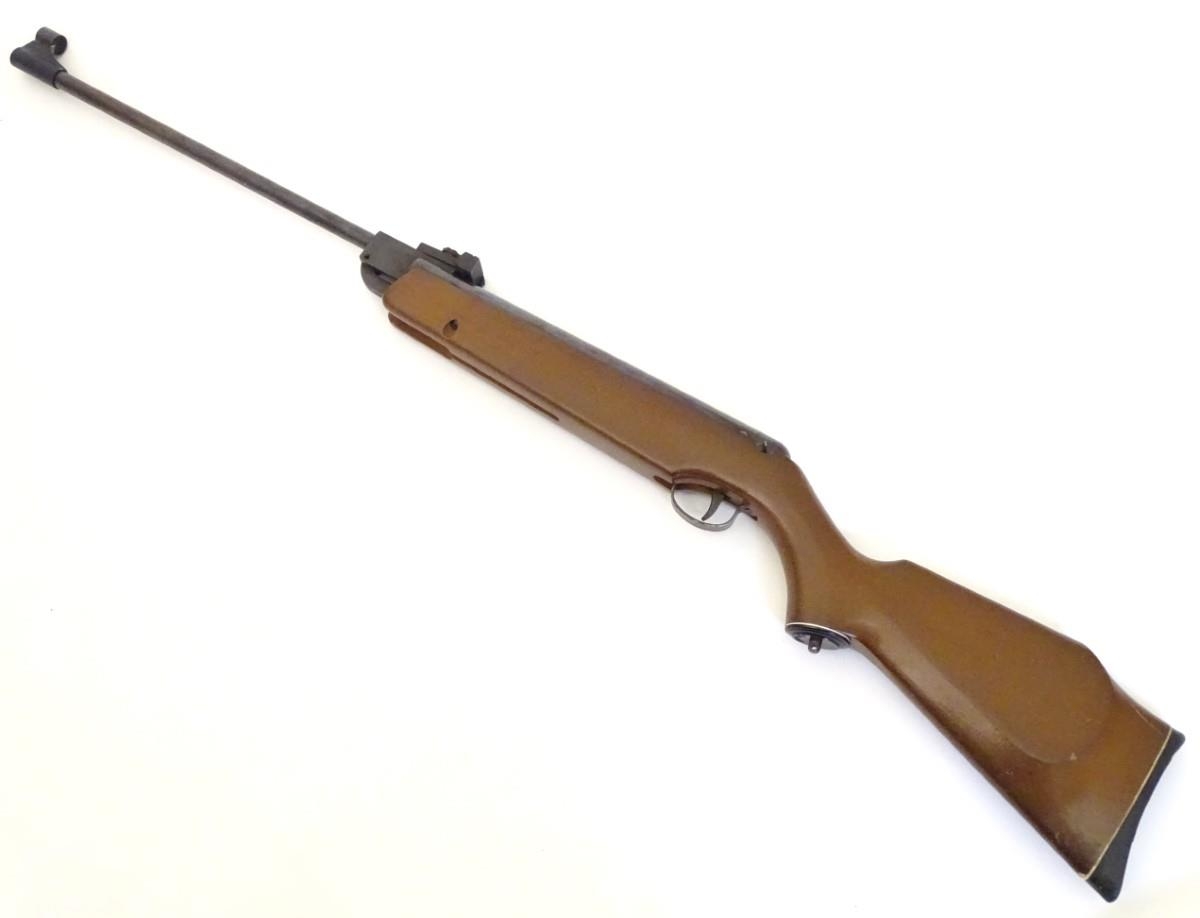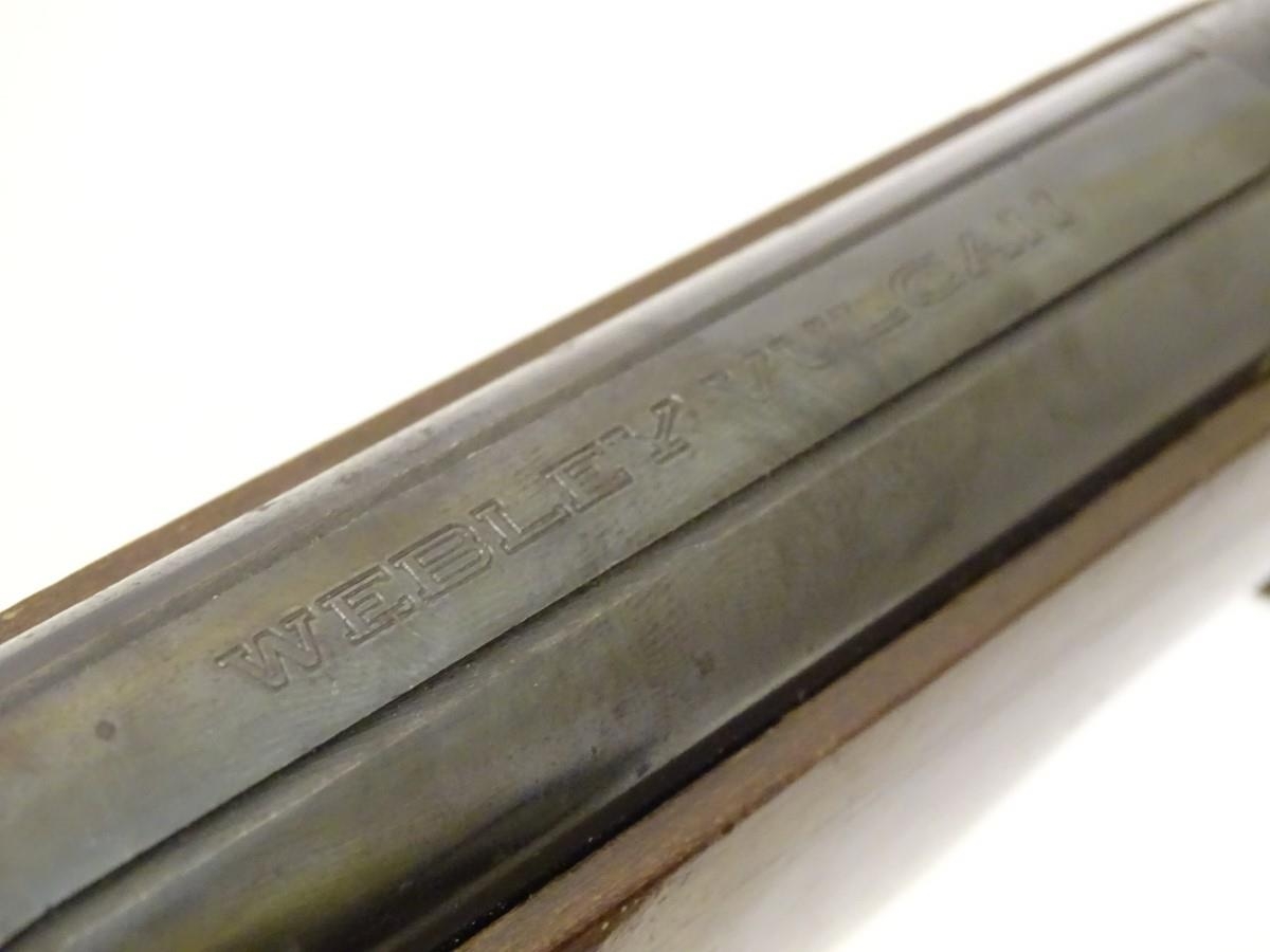 Airgun: a Webley & Scott 'Vulcan' break-action .22 air rifle, beech pistol-grip stock with rubber recoil pad, 19 1/4'' barrel with open adjustable sights. Notice to international bidders: Please note we are a UK based auction house. We ask that you take into consideration possible shipping restrictions and shipping costs prior to bidding with us.
