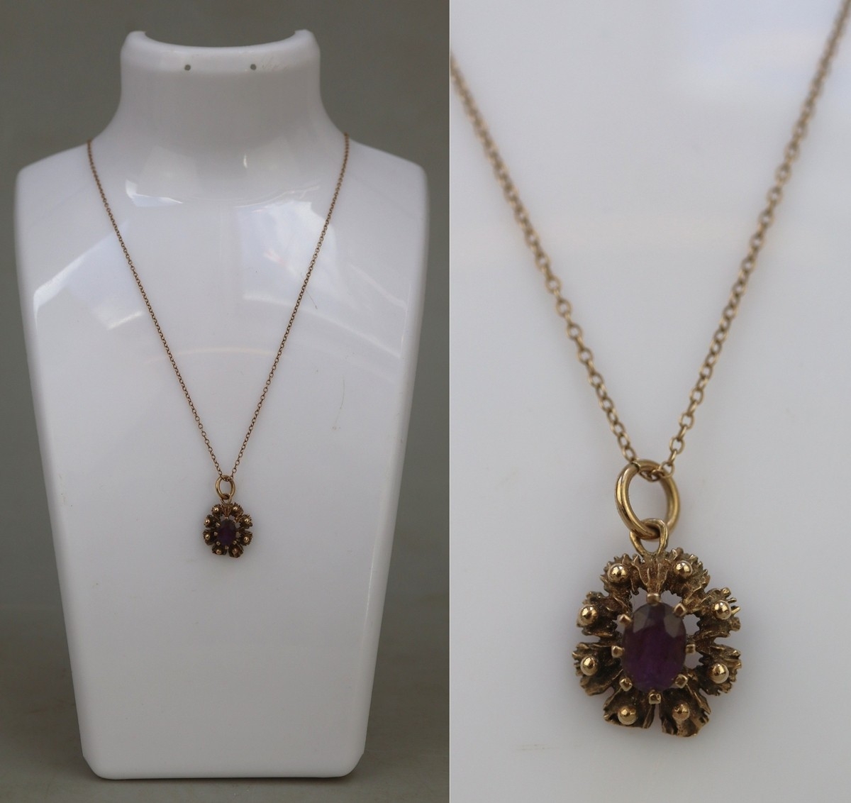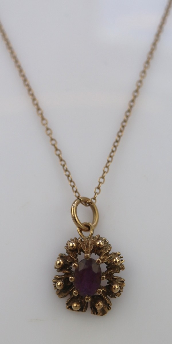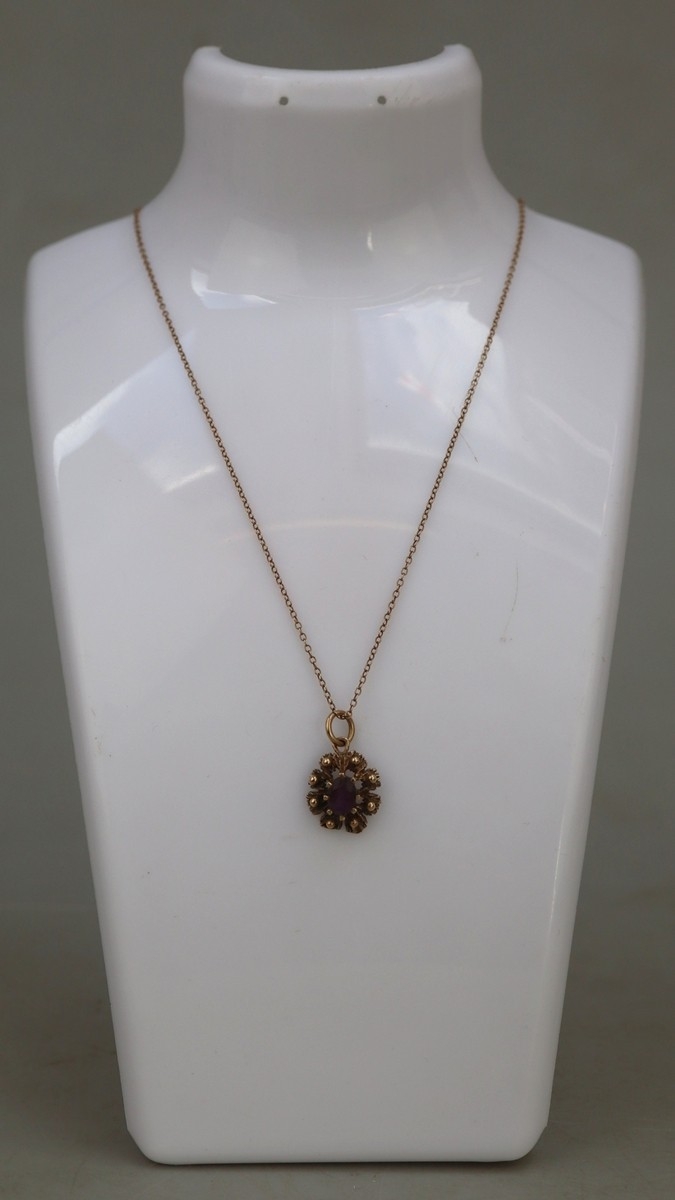 9ct gold necklace with amethyst pendant - Approx 2.7g