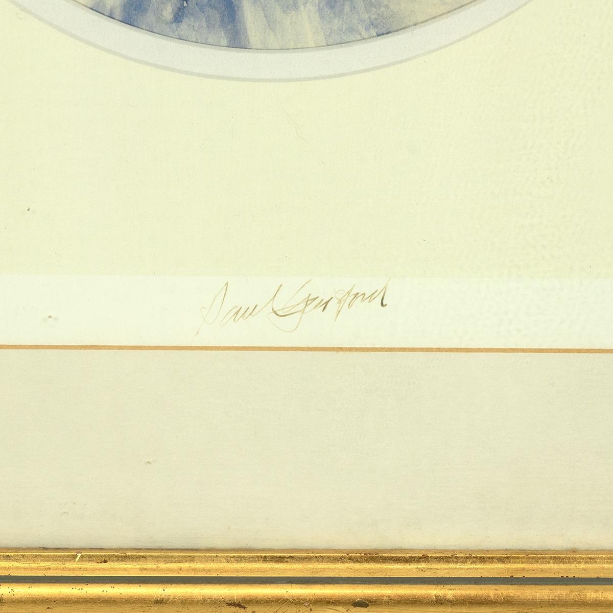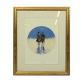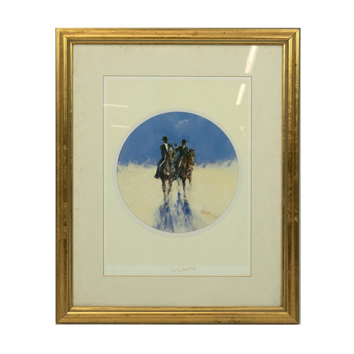 Paul Gaisford (b 1941, British) after, a signed print of two Spanish/South American caballeros in a circular mount, framed and glazed. Mount opening 28cm x 38cm.