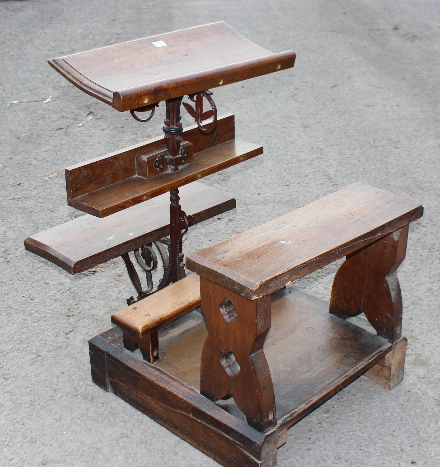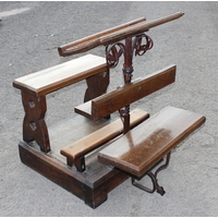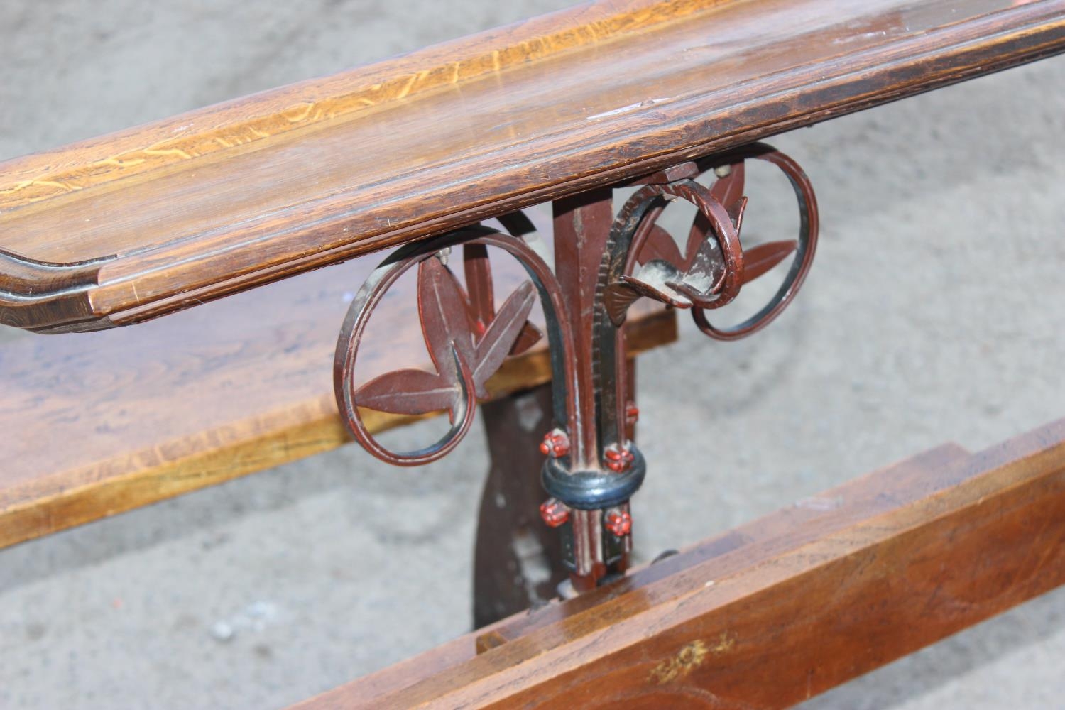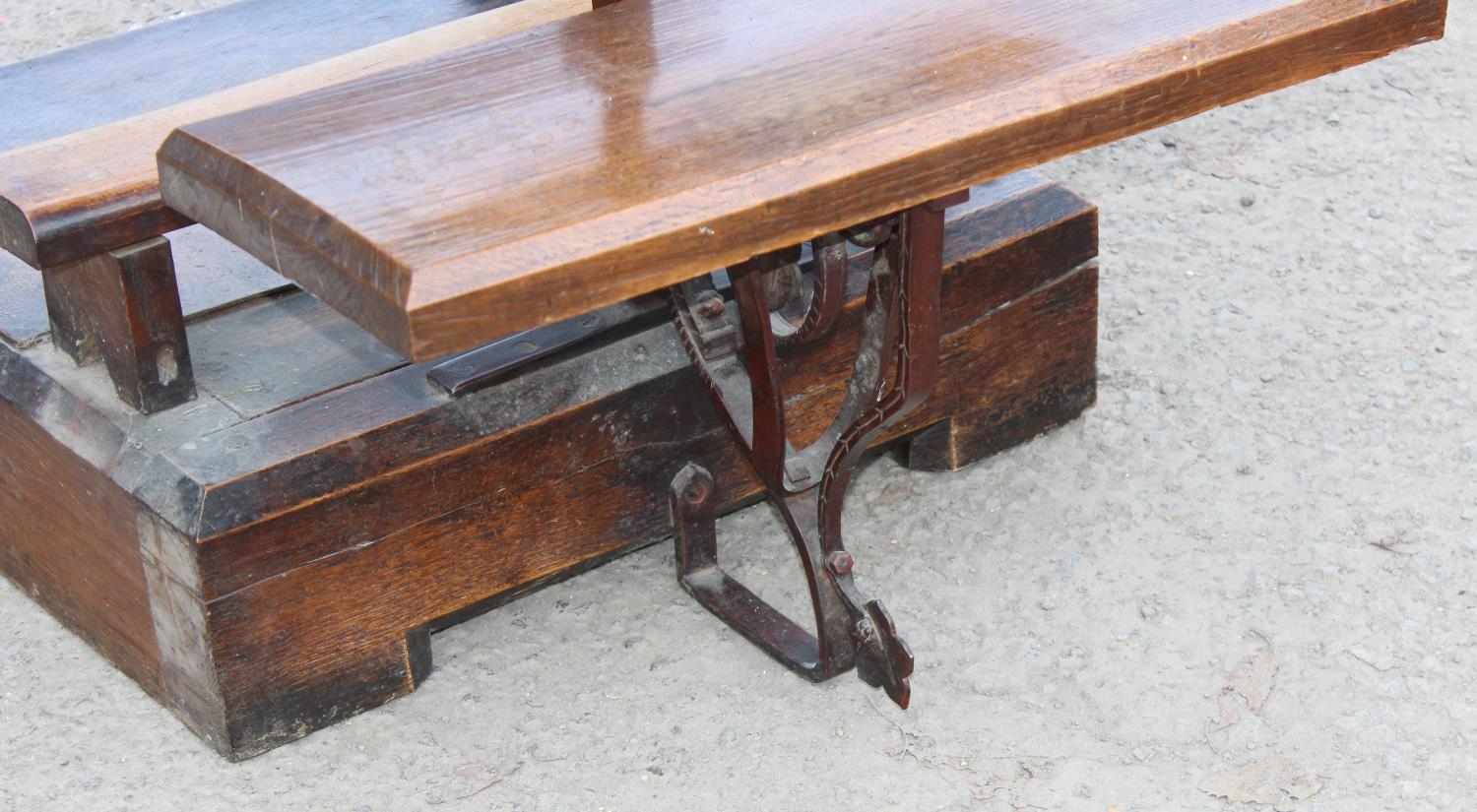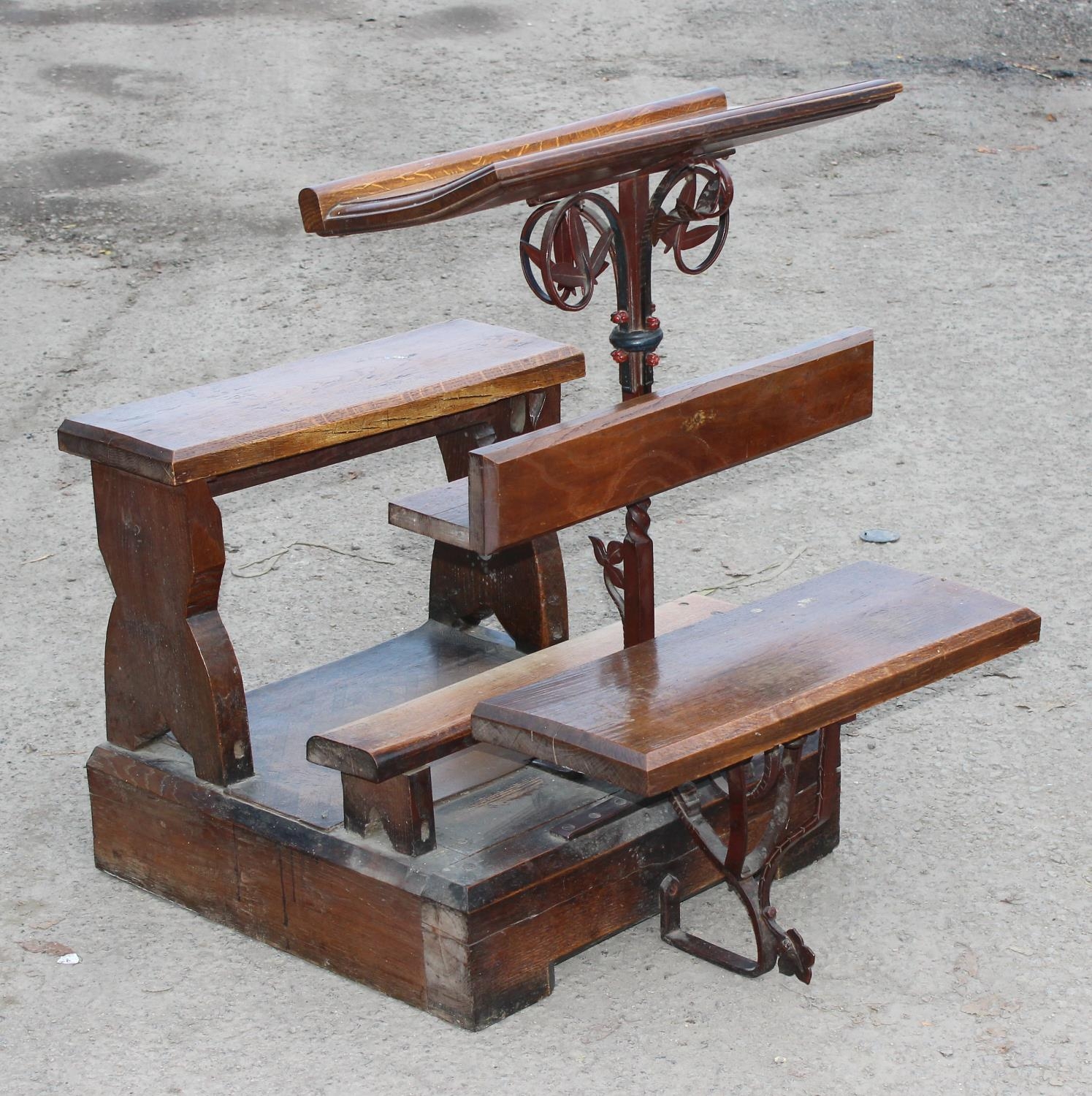 An unusual single person antique Gothic Revival church choir pew with of solid oak and wrought iron construction, approx 2ft 3 inches wide - one of 2 in the sale