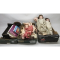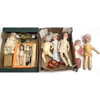 Collection of bisque headed dolls and body parts, books on dolls, etc. (3 boxes)