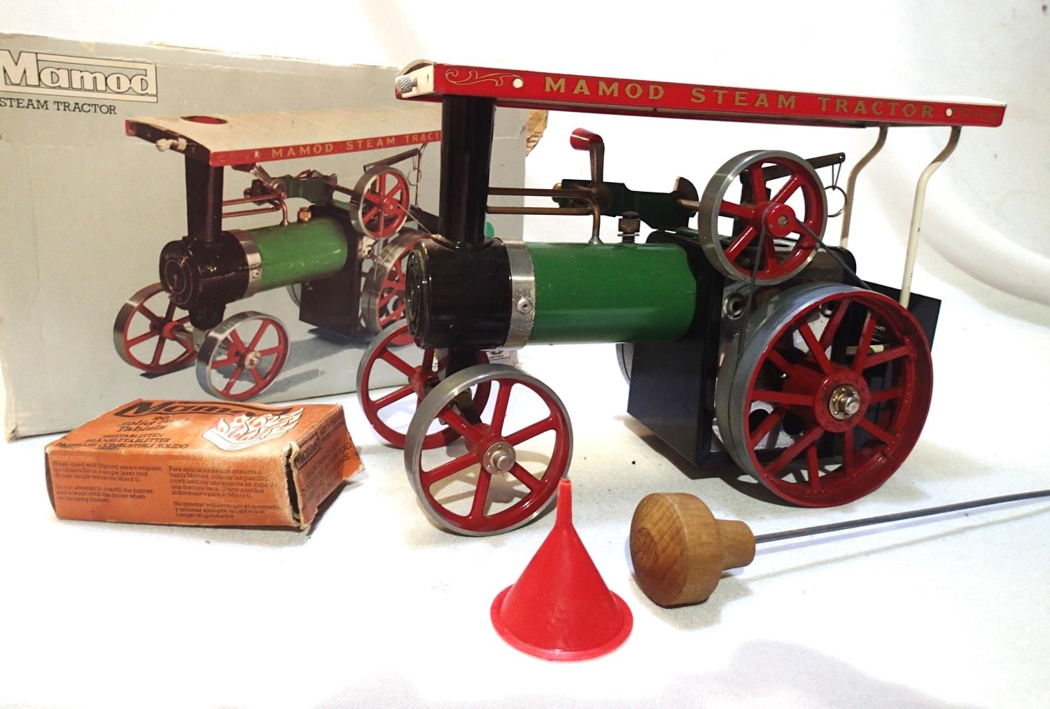 Mamod TE1A traction engine, solid fuel fired, in very good condition, complete, nothing seized, has steering rod and funnel, with some fuel tablets, box is poor. P&P Group 1 (£14+VAT for the first lot and £1+VAT for subsequent lots)