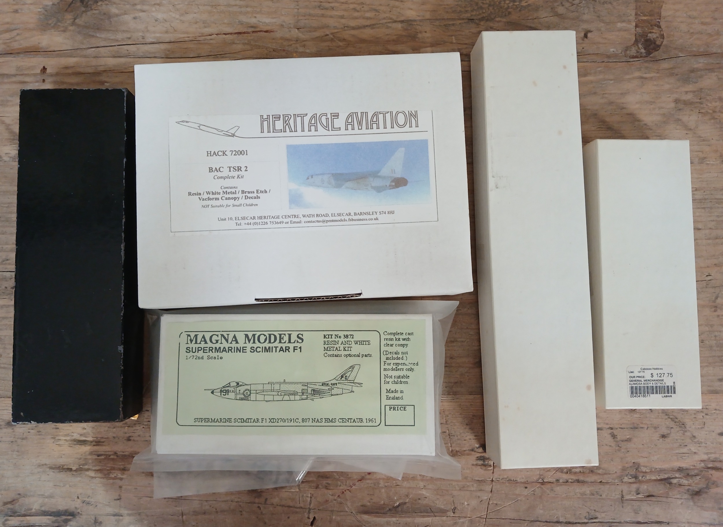 A group of five unbuilt model kits including La Belle, Magma Models, heritage Aviation etc.
