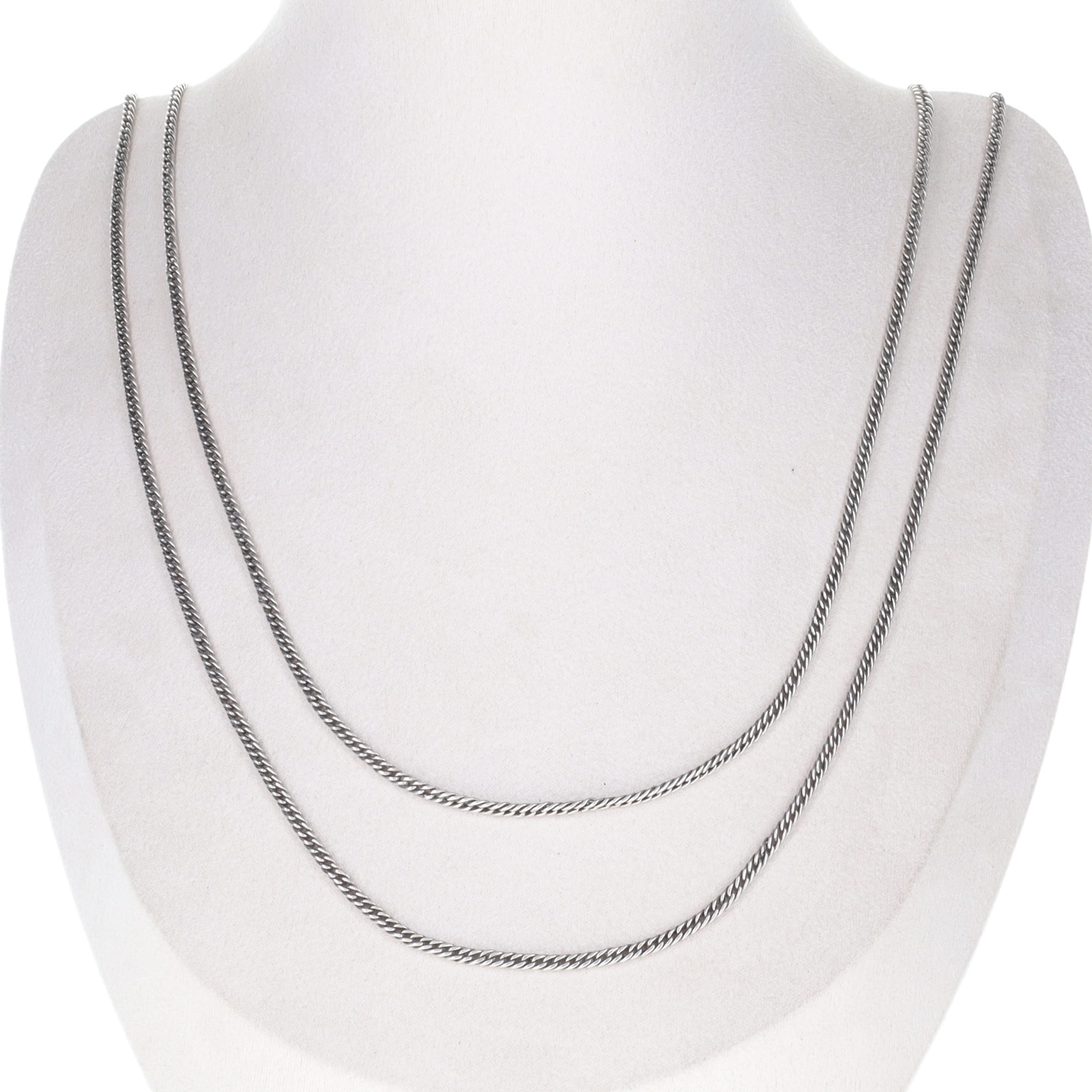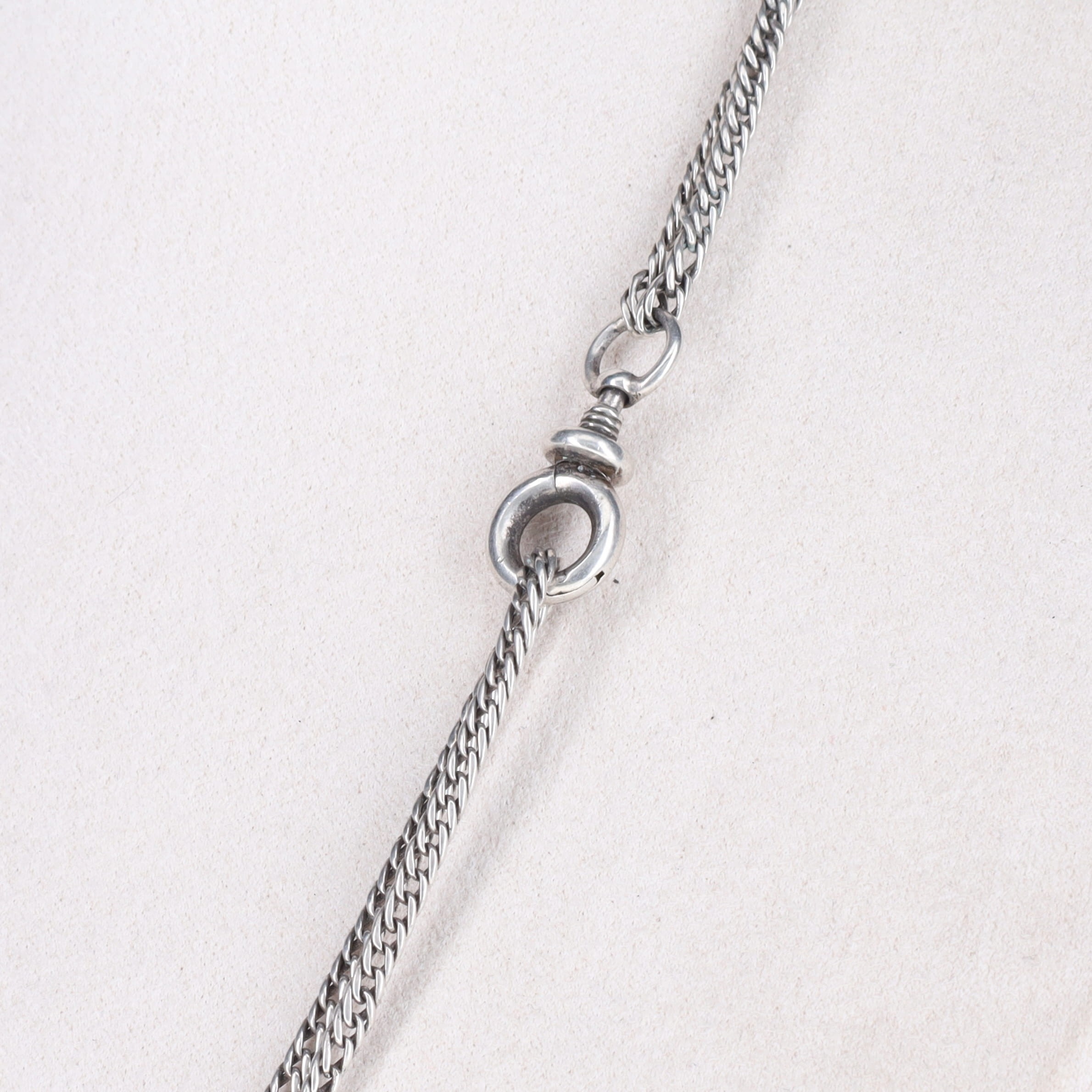 Antique Silver Guard Chain. This chain has been tested as 830 silver. This chain is in excellent condition. Measures approx. 63cm full length. Weighs in total 20g.