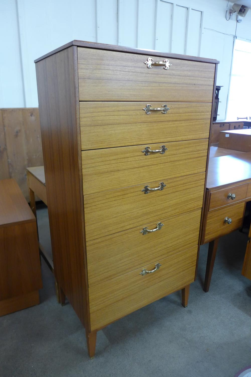 A teak chest of drawers