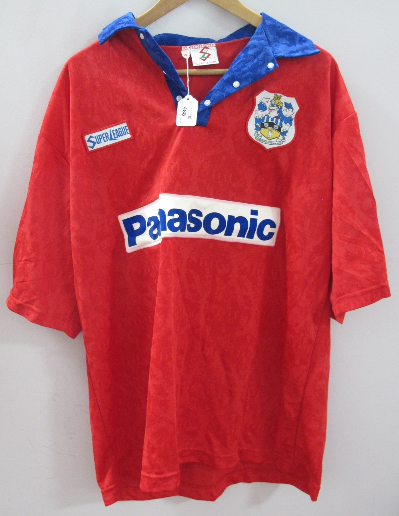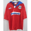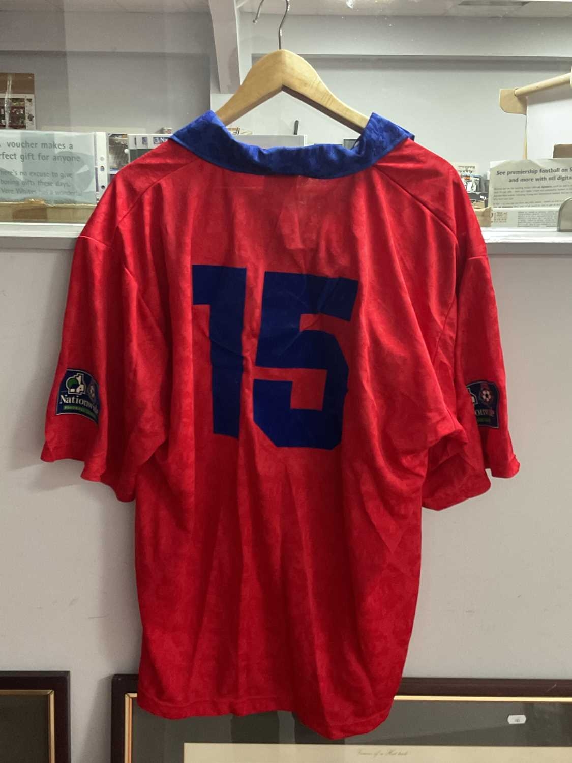 Huddersfield Town Match Worn 'Super League' Red Away Shirt Circa 1996-97, numbered '15' bearing 'Panasonic' logo and Nationwide Football League arm patches, size XL