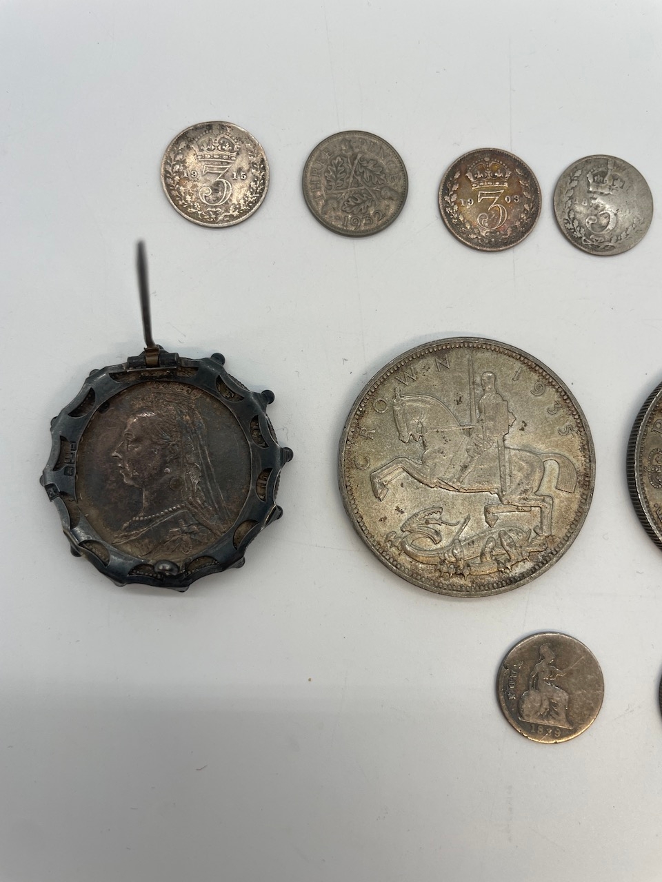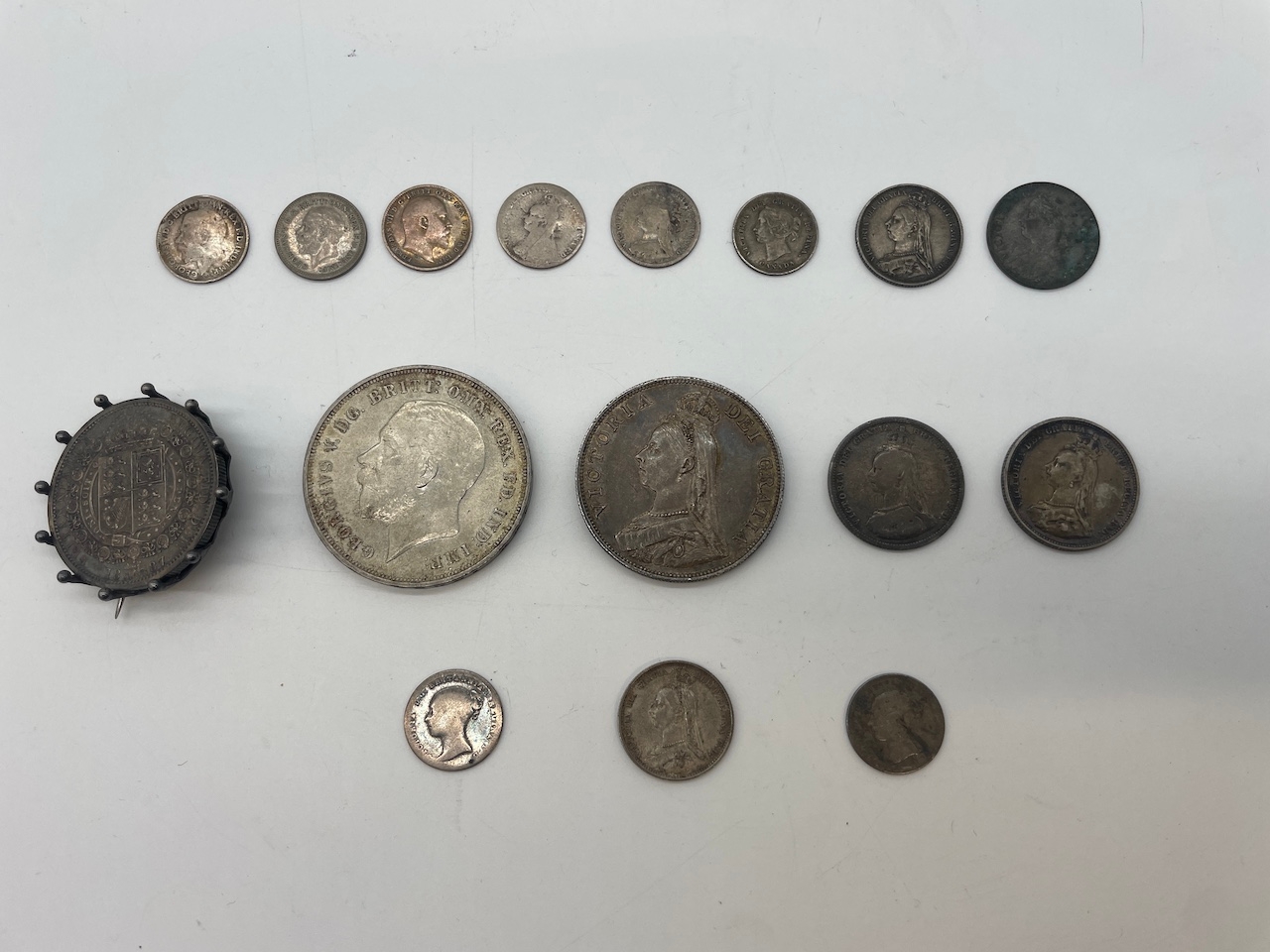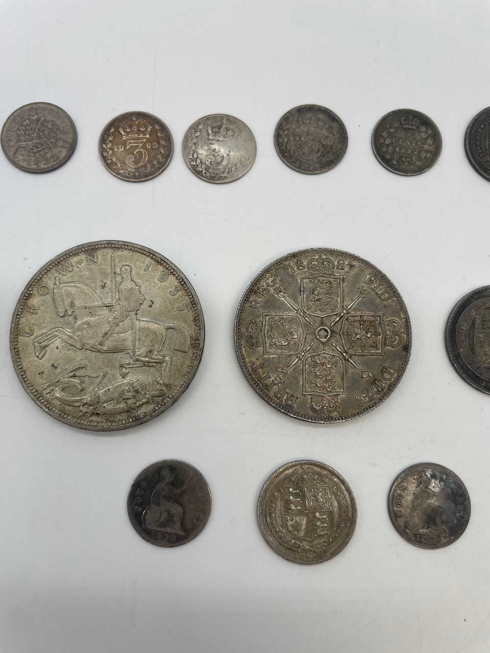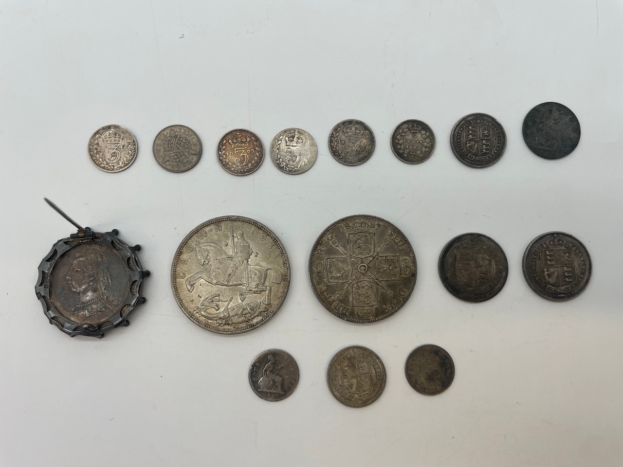 Collection of Queen Victoria to George V Silver Coins inc 1935 Silver Crown, 1887 Double Florin + others