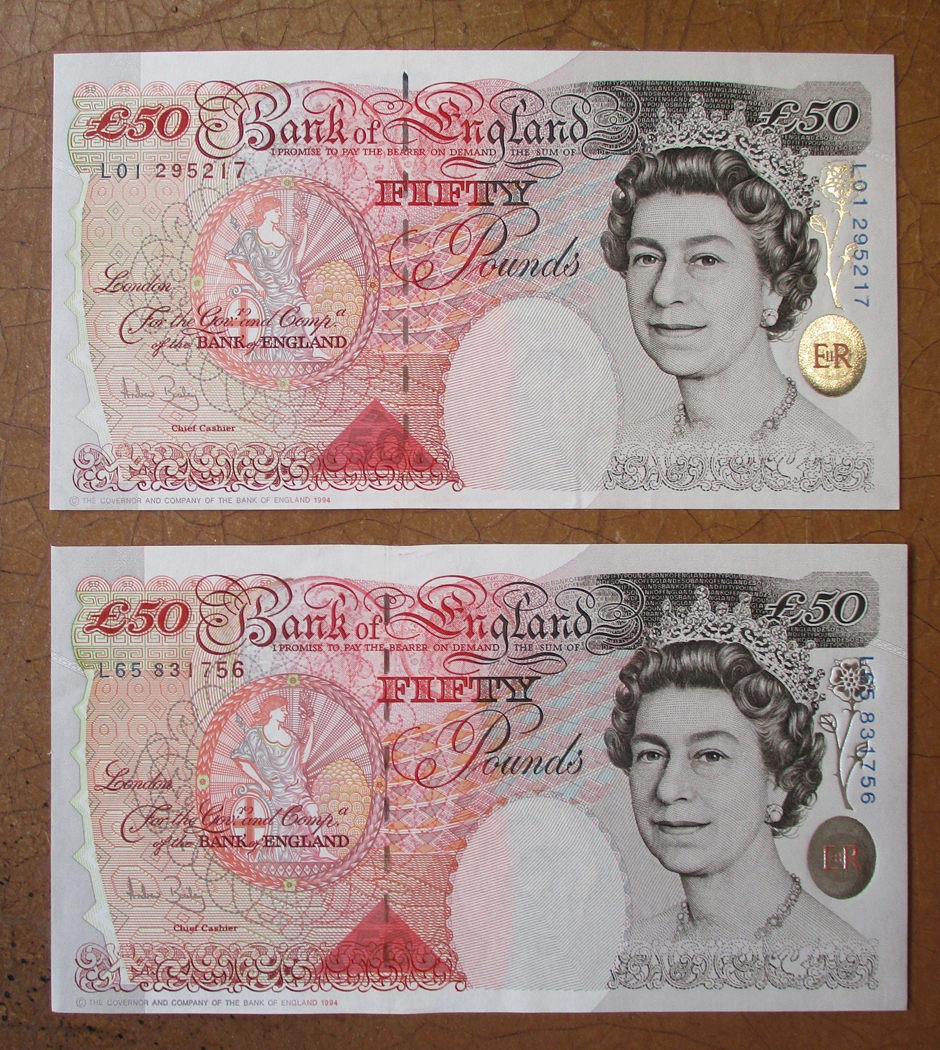A.J. Bailey. £50 range with M19, N63 uncirculated, L01 first run, L65 first series, M01, R42 last series, R70 last run extremely fine/ good extremely fine. (Duggleby B404) Qty 7 (R)