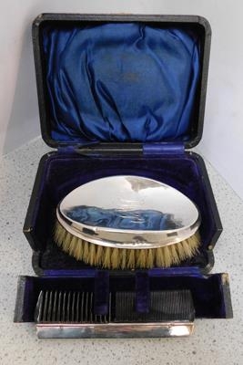 Victorian hallmarked silver brush & comb set in original box