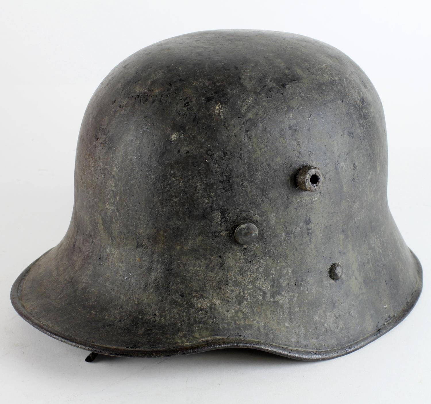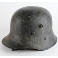 German WW1 M16 steel helmet fitted with WW2 liner and used in WW2 by Reservist units etc., nice original untouched helmet.