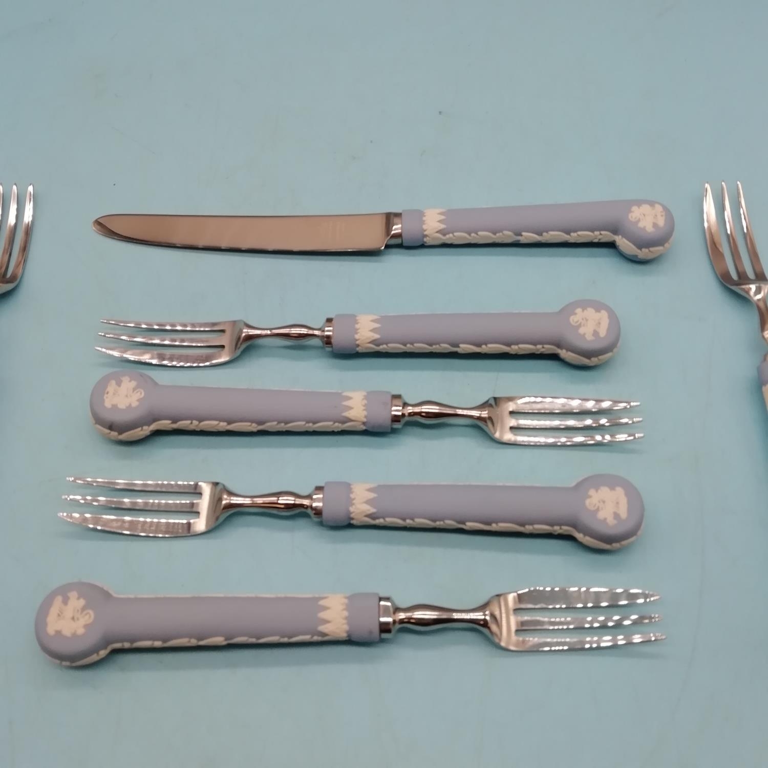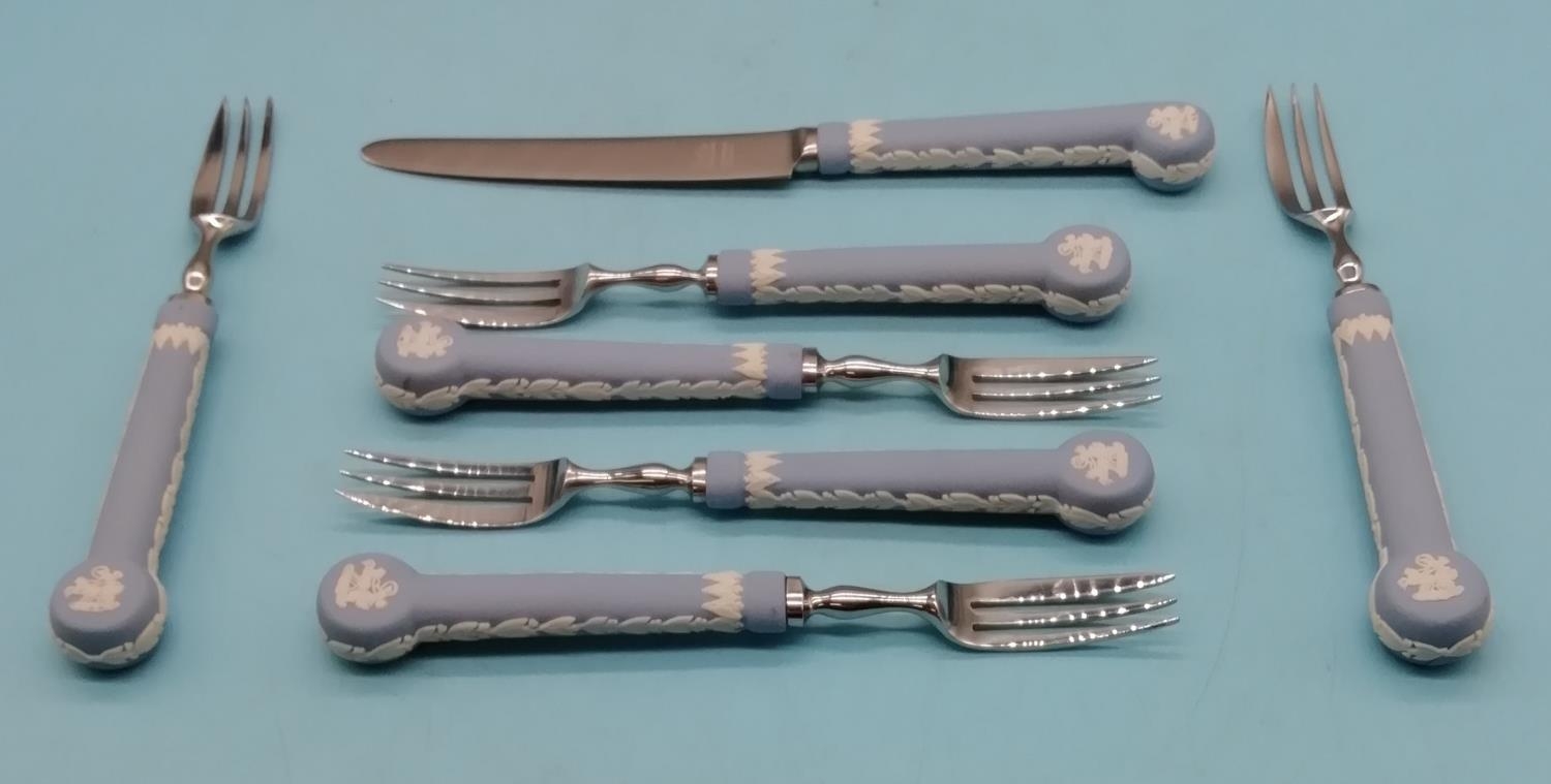 Set of 6 Wedgwood Jasper Handled Pastry Forks plus 1 Knife. Largest 20cm Long.
